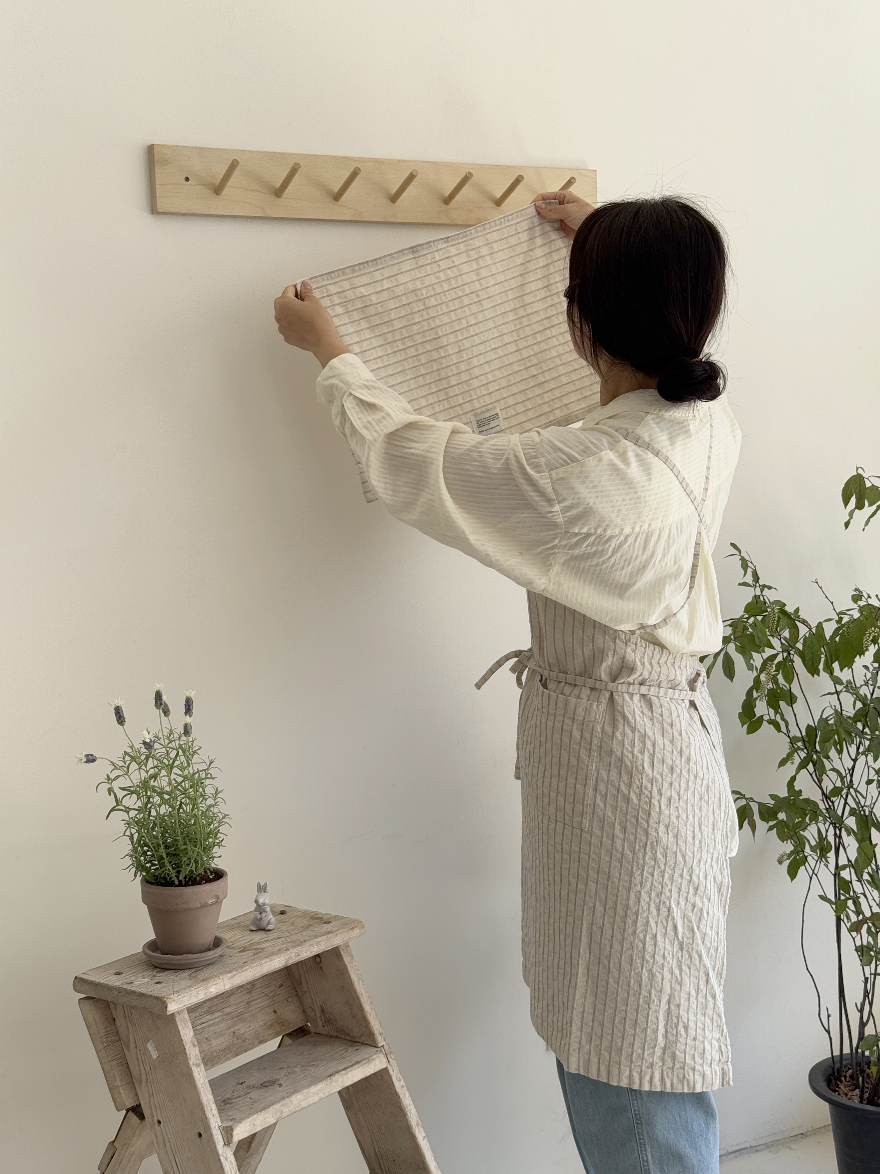 택배는 매주 월, 수, 금요일 발송됩니다. 참고바랍니다 :) [oui:e] ; 위에 어느 곳 '위에' 툭 올려두어도 분위기와 어우러질 다양한 제품을 만나보세요. 면린넨 키친크로스를 소개할게요. 너무 두껍지도 얇지도 않은 적당한 두께감에 낙낙한 사이즈라 가전덮개로는 물론이고, 테이블매트나 다용도 매트로도 활용도가 좋아요. 반접어서 툭 올리고 위에 식기를 올려도 간편하게 분위기내며 먹을 수 있어요. 베이지&블루컬러 스티치가 포인트인 면린넨 원단은 컬러감부터 차분한 톤이 어우러져서 고슬한 질감 또한 내츄럴함이 묻어나요. 뒷면에 작은 라벨고리를 달아주어, 후크에도 편히 걸 수 있어요 :) 모든 작업은 손으로 재단 및 봉제작업이 진행됩니다. 공장에서 제작하듯 똑같은 제품들이 나오지 않습니다. 동일한 제품이라도 형태가 조금씩 차이가 날 수 있으니 참고하시고 주문부탁드립니다 ^^ !! 첫 세탁은 가벼운 단독세탁 후 사용바랍니다 !! 망에 넣어 찬물세탁 건조기 사용불가 면 70% 린넨 30% 약 50cm x 35cm 수작업 특성상 재단에 편차가 있어, 1~3cm 오차가 있을 수 있습니다. 핸드메이드 상품으로 모양이나 크기가 약간 차이날 수 있습니다. 원단에 잡사나 올풀림 혹은 올튕김이 있을 수 있으며 이는 불량이 아님을 참고바랍니다. 무늬가 반듯하지 않고, 실밥 혹은 실뭉치 등이 있을 수 있습니다. 건조기는 사용불가하며, 가볍게 탈수해서 건조해주세요. 세탁 부주의로 인한 제품변형은 교환 및 반품이 불가합니다. 원단은 세탁 후 약간 수축될 수 있으며, 이는 자연스러운 현상입니다. 원단은 재생산 과정에서 컬러나 재질감의 차이가있을 수 있습니다. 원단에 잡사나 올풀림 혹은 올튕김이 있을 수 있으며 이는 불량이 아님을 참고바랍니다. 이는 모두 제작시 생기는 자연스러운 현상으로 상품 불량이 아니며, 이로 인한 교환, 환불은 불가하오니 구매 전 참고바랍니다. 구매자의 단순 변심은 상품수령 후 7일 이내 가능합니다. (구매자 반품 배송비 부담) |