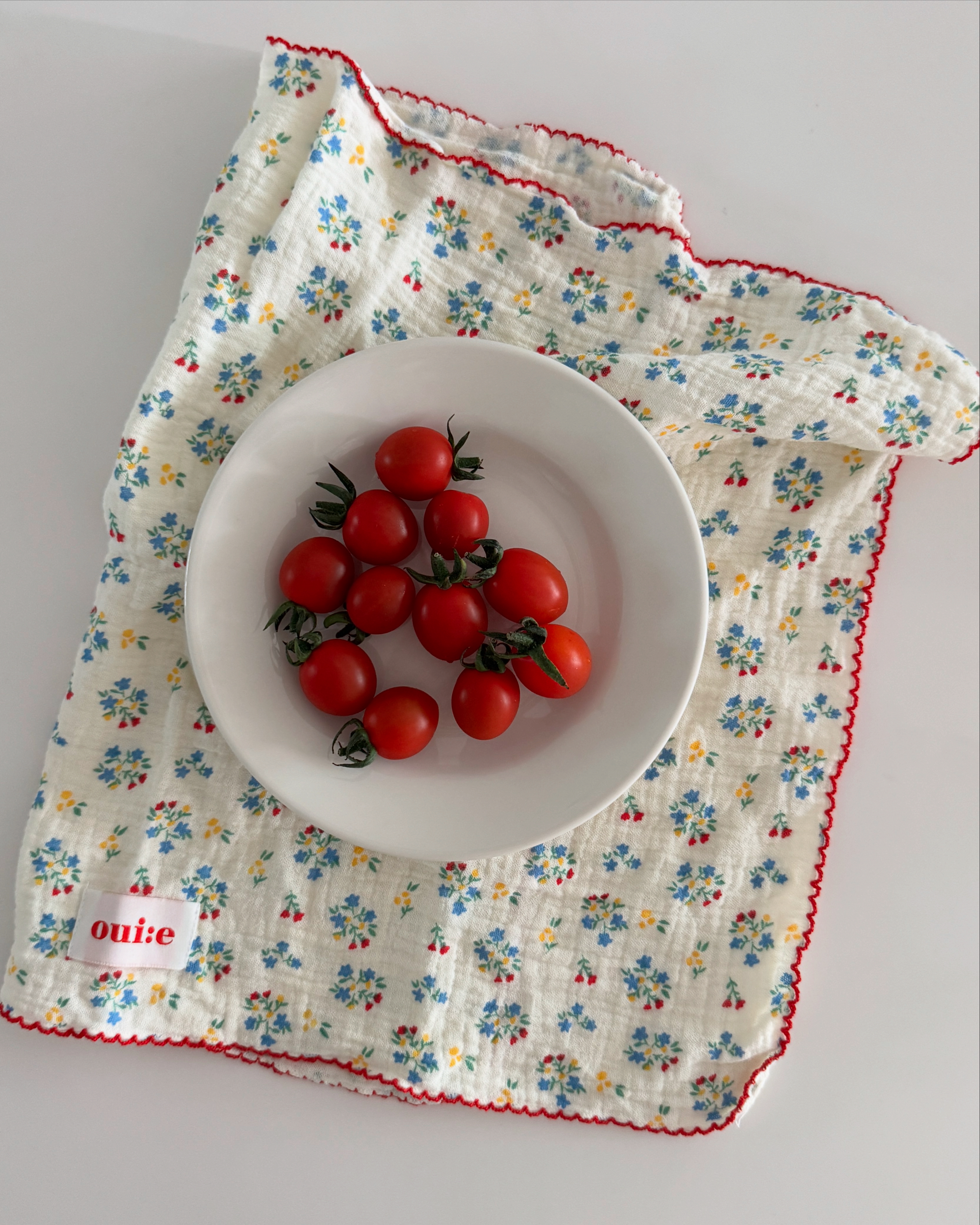 택배는 매주 월, 수, 금요일 발송됩니다. 참고바랍니다 :) [oui:e] ; 위에 어느 곳 '위에' 툭 올려두어도 분위기와 어우러질 다양한 제품을 만나보세요. 부들부들한 거즈 키친크로스?? 빈티지무드의 꽃패턴이 알록달록 색감으로 한가득~ 끝단에 귀여운 레드포인트마저 상큼해요? 얇은 거즈라 물기도 빨리 마르고, 세탁할수록 오그라지는 매력이 있는 면거즈원단이예요 가로 50cm로 사이즈를 넉넉히 제작하였어요 :) 가벼운 테이블매트로 사용시에는, 반접어서 루즈하게 사용해도 좋아요. 가전덮개로도 테이블매트로도 행주주대용으로도 다용도로 활용할 수 있어요. 모든 작업은 손으로 재단 및 봉제작업이 진행됩니다. 공장에서 제작하듯 똑같은 제품들이 나오지 않습니다. 동일한 제품이라도 형태가 조금씩 차이가 날 수 있으니 참고하시고 주문부탁드립니다 ^^ !! 첫 세탁은 가벼운 단독세탁 후 사용바랍니다 !! 망에 넣어 찬물세탁 건조기 사용불가 면100% 약 50cm x 35cm 거즈소재 특성상 재단에 편차가 있어, 1~3cm 오차가 있을 수 있습니다. 천연섬유특성상(면) 세탁후 약간의 줄어듬이 있을 수 있으며, 이는 자연스러운 현상입니다. 핸드메이드 상품으로 모양이나 크기가 약간 차이날 수 있습니다. 원단에 잡사나 올풀림 혹은 올튕김이 있을 수 있으며 이는 불량이 아님을 참고바랍니다. 무늬가 반듯하지 않고, 실밥 혹은 실뭉치 등이 있을 수 있습니다. 건조기는 사용불가하며, 가볍게 탈수해서 건조해주세요. 세탁 부주의로 인한 제품변형은 교환 및 반품이 불가합니다. 원단은 세탁 후 약간 수축될 수 있으며, 이는 자연스러운 현상입니다. 원단은 재생산 과정에서 컬러나 재질감의 차이가있을 수 있습니다. 원단에 잡사나 올풀림 혹은 올튕김이 있을 수 있으며 이는 불량이 아님을 참고바랍니다. 이는 모두 제작시 생기는 자연스러운 현상으로 상품 불량이 아니며, 이로 인한 교환, 환불은 불가하오니 구매 전 참고바랍니다. 구매자의 단순 변심은 상품수령 후 7일 이내 가능합니다. (구매자 반품 배송비 부담) |
