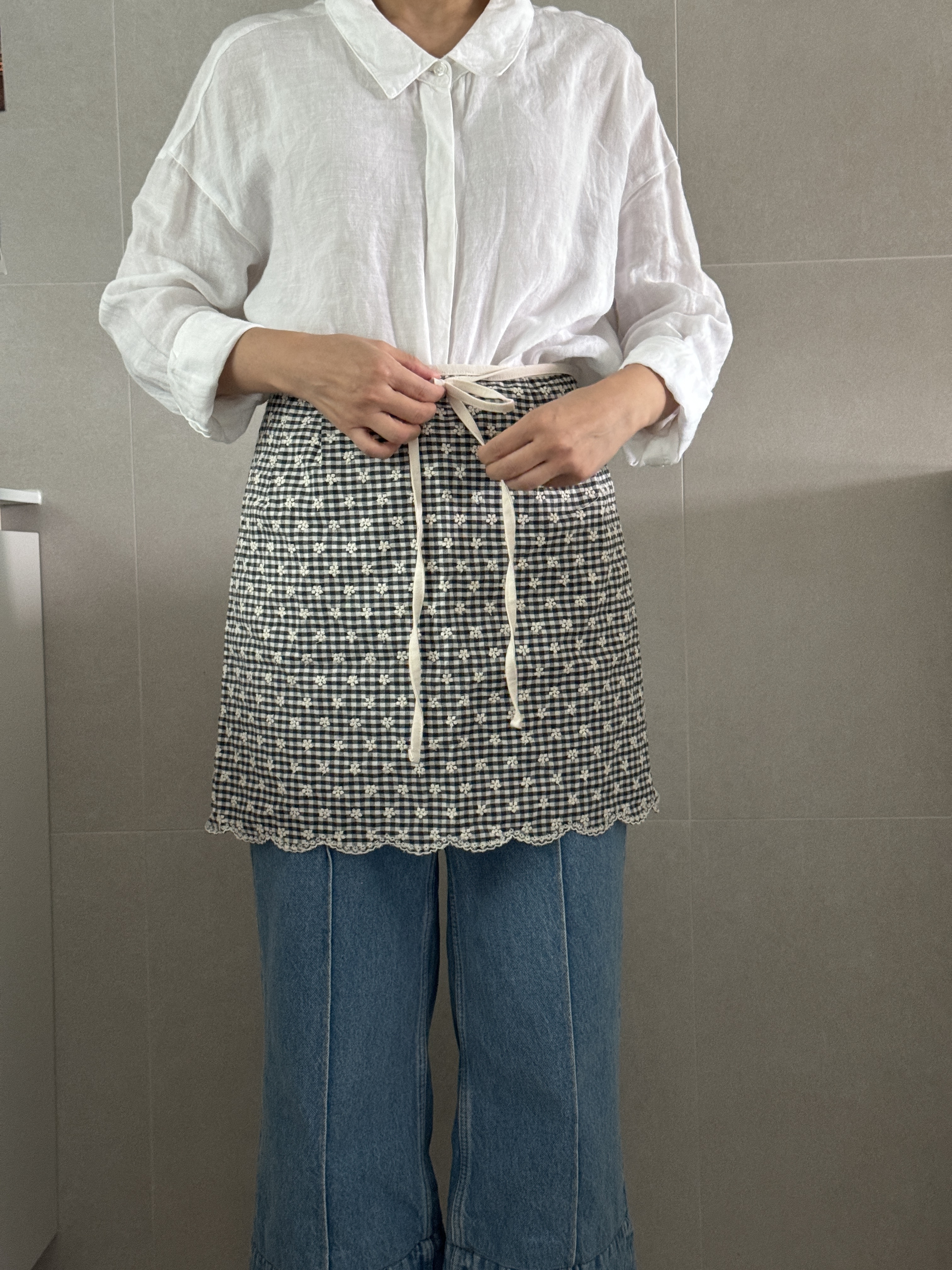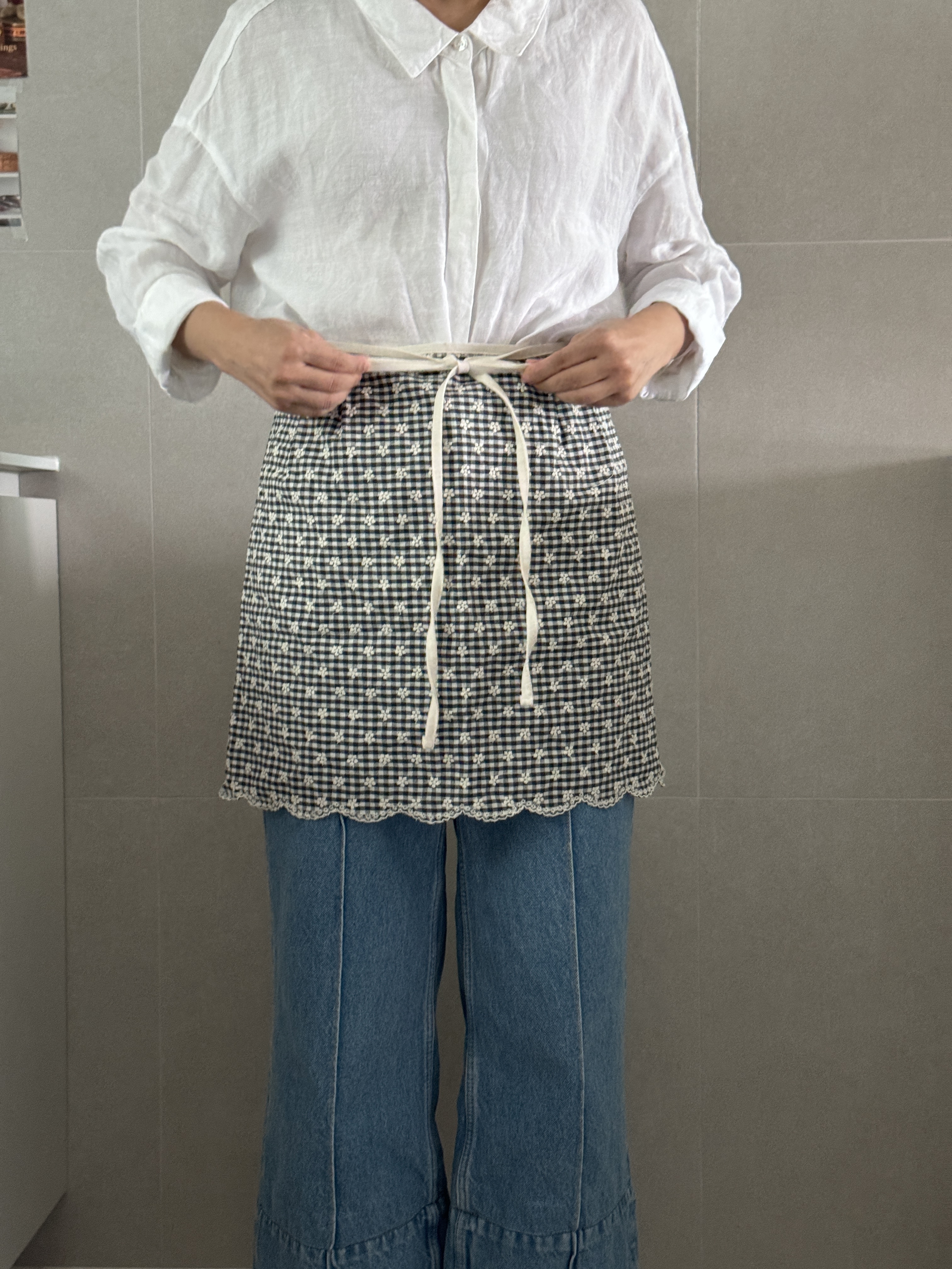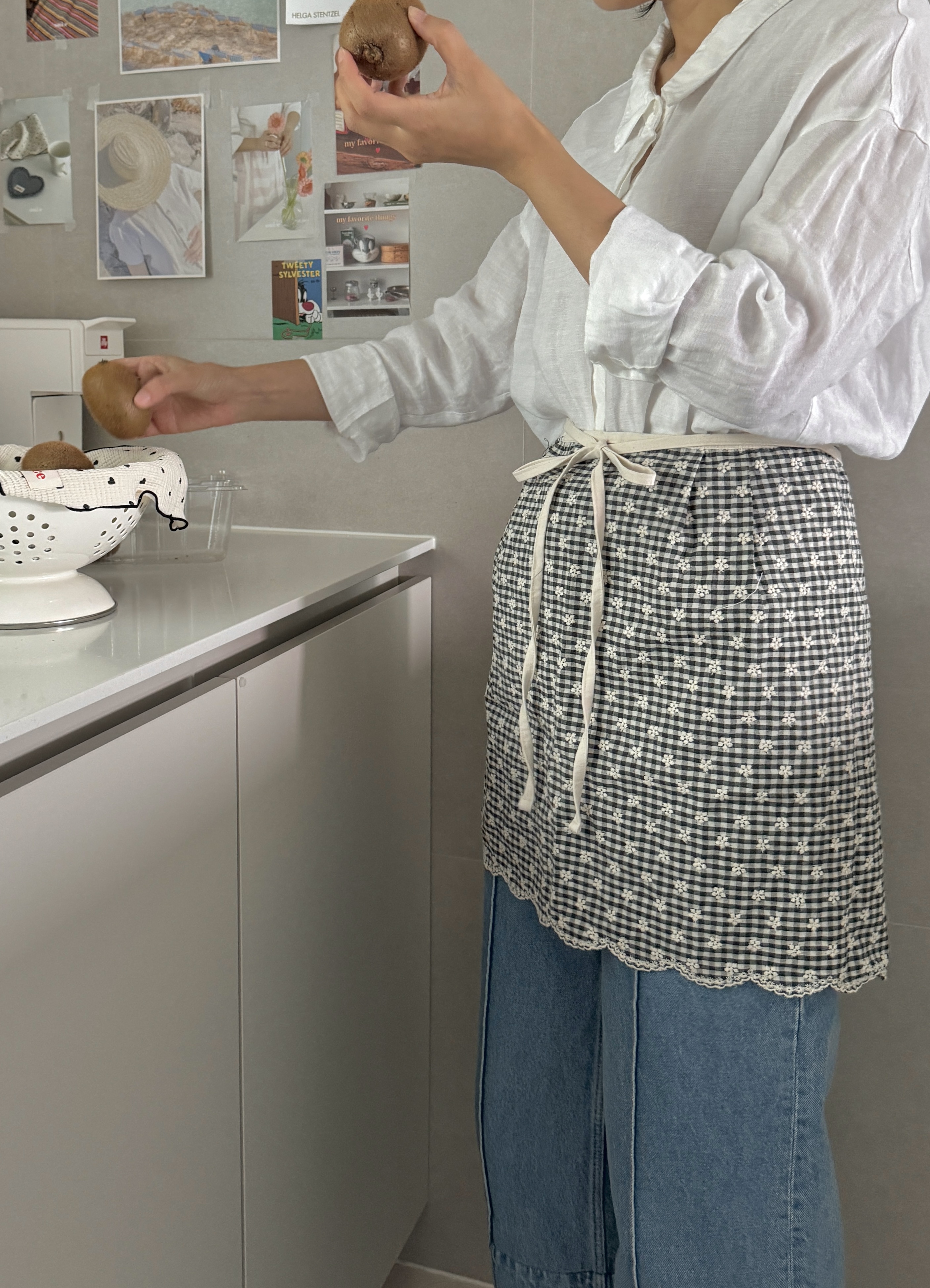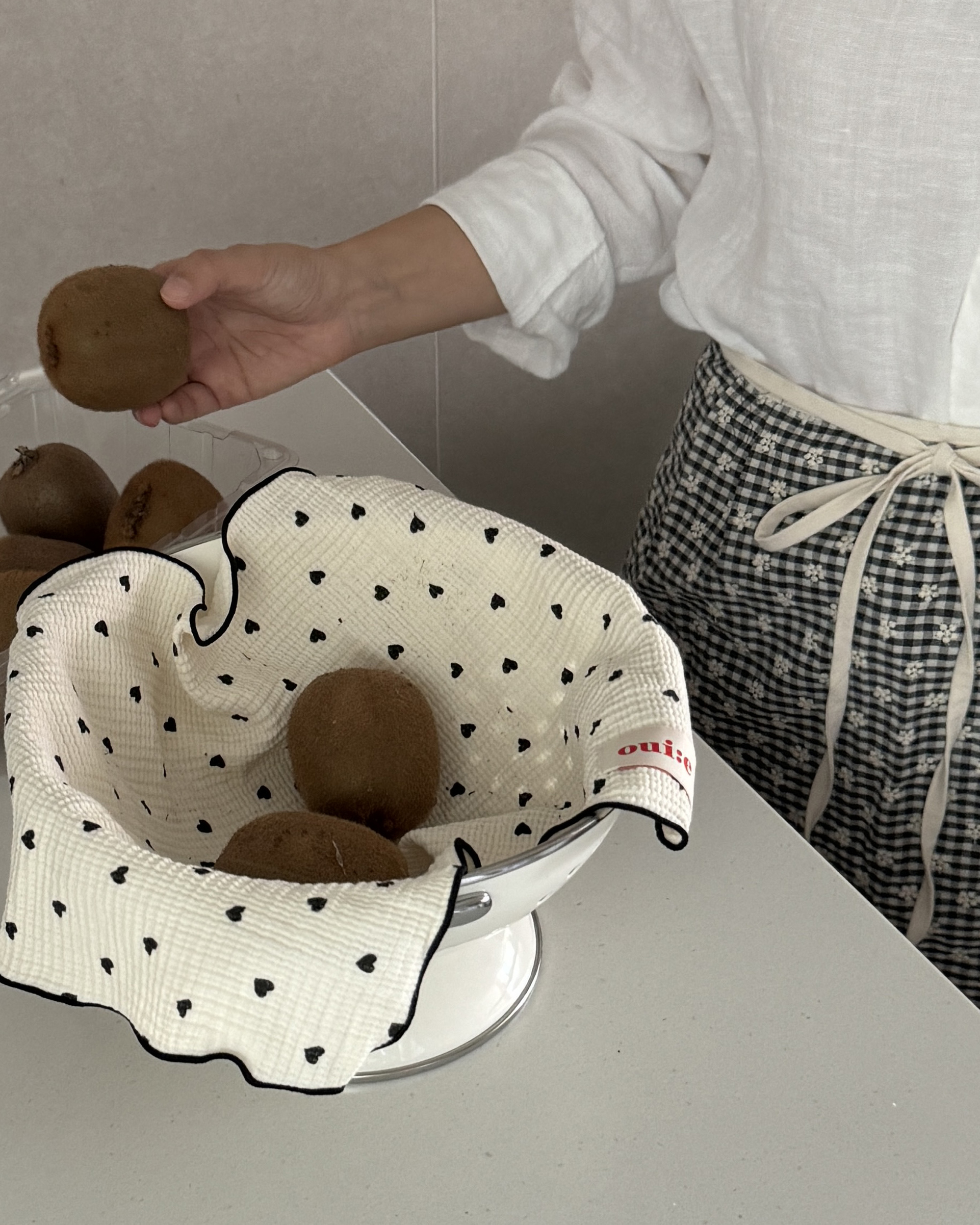 택배는 매주 월, 수, 금요일 발송됩니다. 참고바랍니다 :) [oui:e] ; 위에 어느 곳 '위에' 툭 올려두어도 분위기와 어우러질 다양한 제품을 만나보세요. 귀여운 깅엄체크패턴에 하얀 꽃자수가 들어간 어여쁜 허리앞치마입니다. 자수공정으로 인해 원단가격대가 있지만, 예쁜건 또 못 참잖아요? 베이직한 기본형 허리앞치마예요. 허리 주름이나 호주머니가 없는 군더더기 없는 심플디자인이여요. 면소재를 좋아하는지라, 이번에도 30수 면 소재입니다. 레드체크는 상큼발랄귀염뽀짝하게 포인트로 입어도 예쁜 것 같아요. 블랙체크는 너무 쨍하지않아서, 튀지않고 더 무드있는 것 같아요. 주문확인 후 제작되는 상품으로, 미리 제작해둔 재고가 없을 시 주문일로부터 2~3일 걸릴 수 있습니다. 원하는 날짜가 있을 시, 미리 톡톡문의 바랍니다 *** 주문 전 필독사항 *** 샘플과 완제품 착샷이 섞여있어요. 완제품은 허리에 주름이 없습니다. 참고바래요 :) *** 주문 전 필독사항 *** 완제품은 허리에 주름이 없습니다. 참고바래요 :) SIZE 가로 약 89cm (끈제외) 기장 약 43 cm 세탁망에 넣어 찬물세탁 |