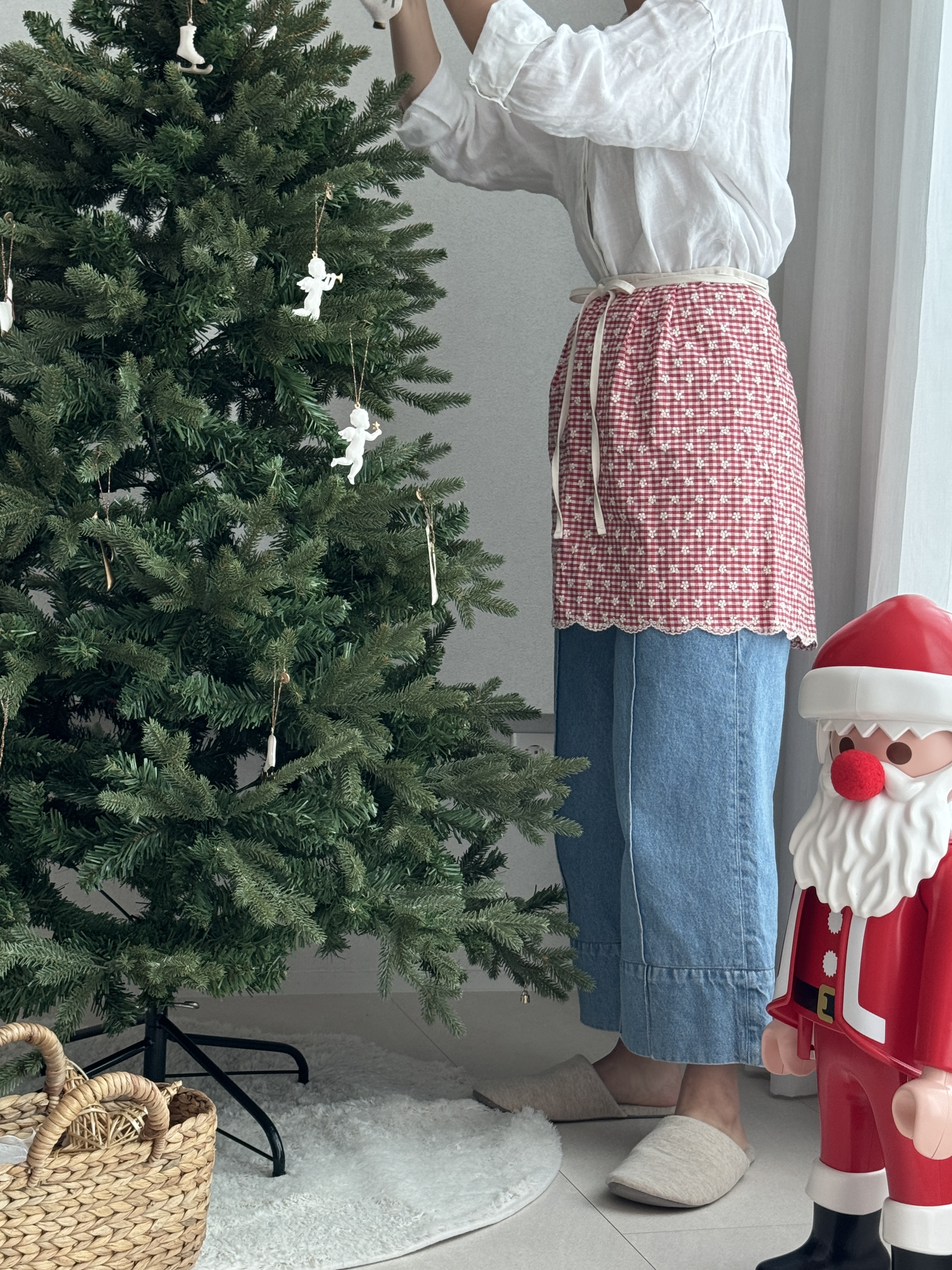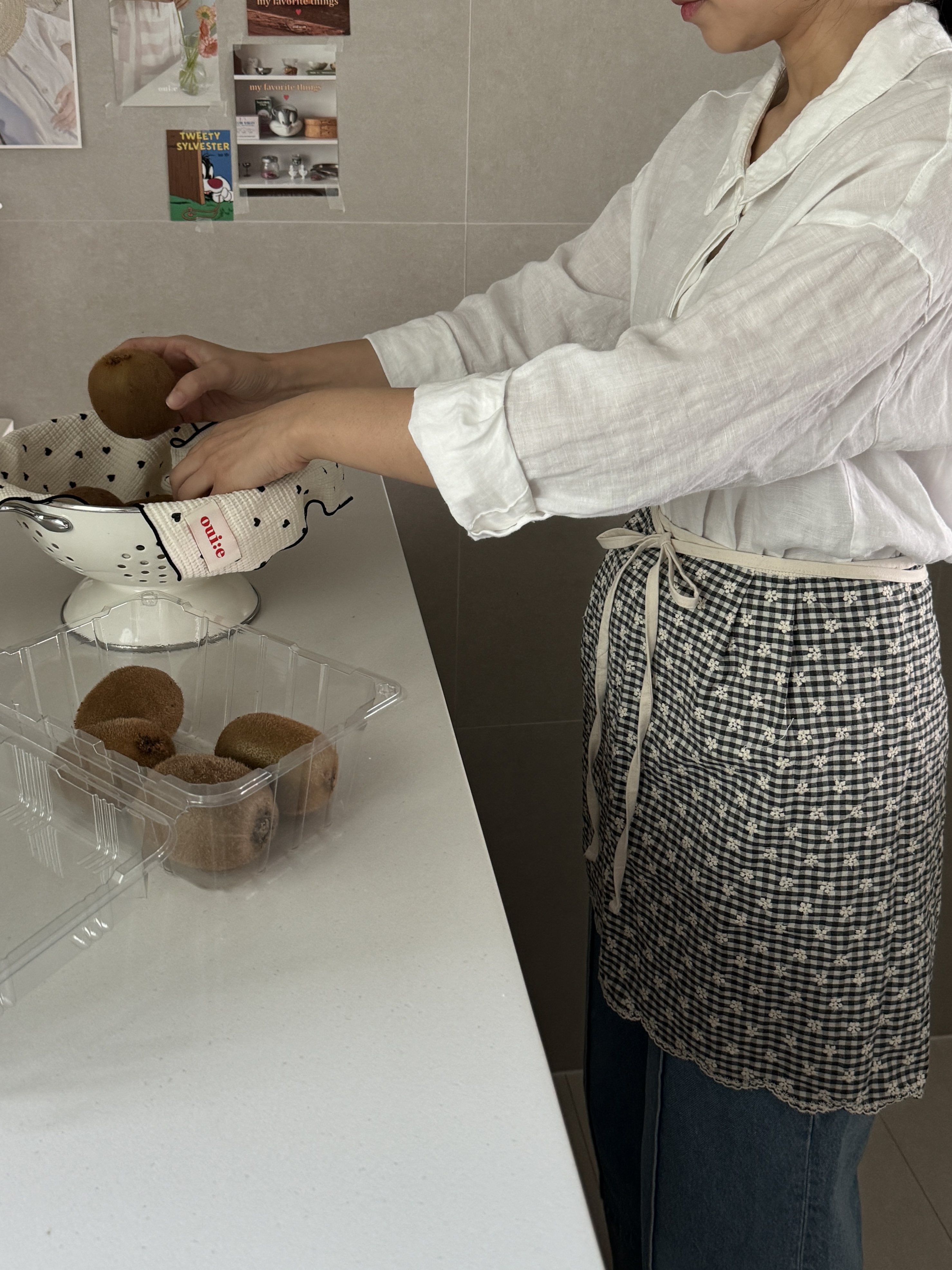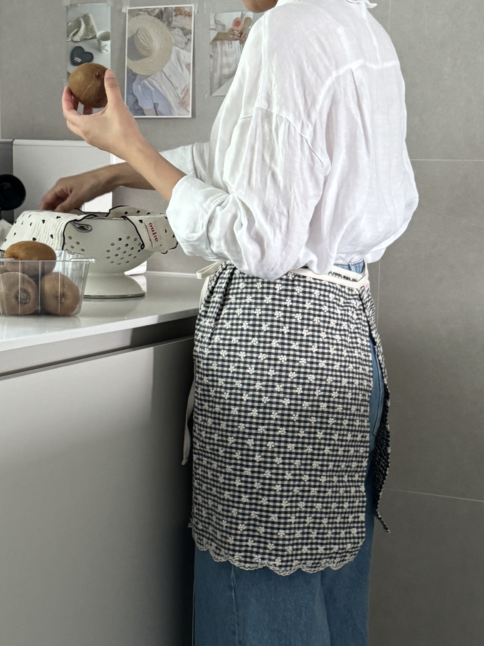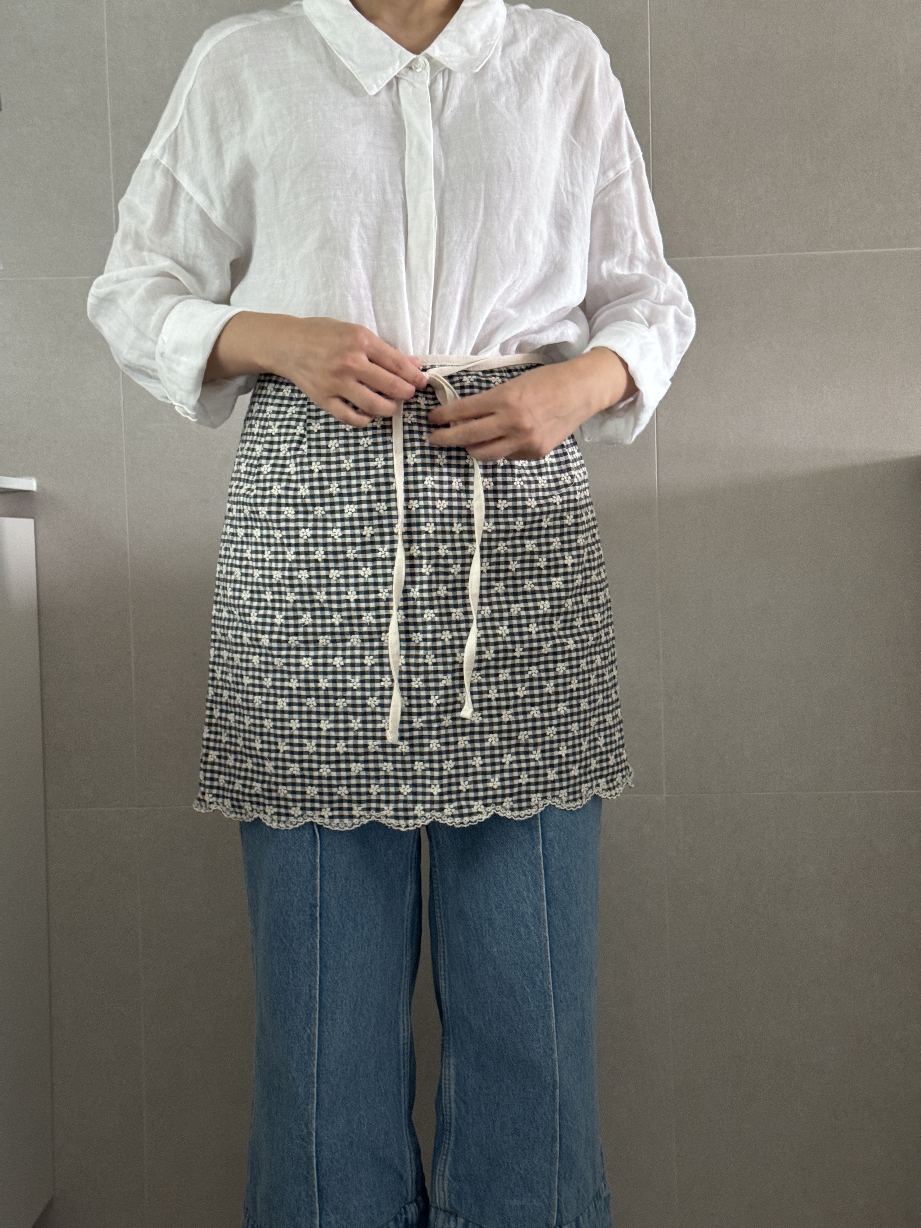 택배는 매주 월, 수, 금요일 발송됩니다. 참고바랍니다 :) [oui:e] ; 위에 어느 곳 '위에' 툭 올려두어도 분위기와 어우러질 다양한 제품을 만나보세요. 귀여운 깅엄체크패턴에 하얀 꽃자수가 들어간 어여쁜 허리앞치마입니다. 자수공정으로 인해 원단가격대가 있지만, 예쁜건 또 못 참잖아요? 베이직한 기본형 허리앞치마예요. 허리 주름이나 호주머니가 없는 군더더기 없는 심플디자인이여요. 면소재를 좋아하는지라, 이번에도 30수 면 소재입니다. 레드체크는 상큼발랄귀염뽀짝하게 포인트로 입어도 예쁜 것 같아요. 블랙체크는 너무 쨍하지않아서, 튀지않고 더 무드있는 것 같아요. 주문확인 후 제작되는 상품으로, 미리 제작해둔 재고가 없을 시 주문일로부터 2~3일 걸릴 수 있습니다. 원하는 날짜가 있을 시, 미리 톡톡문의 바랍니다 *** 주문 전 필독사항 *** 샘플과 완제품 착샷이 섞여있어요. 완제품은 허리에 주름이 없습니다. 참고바래요 :) *** 주문 전 필독사항 *** 완제품은 허리에 주름이 없습니다. 참고바래요 :) SIZE 가로 약 89cm (끈제외) 기장 약 43 cm 세탁망에 넣어 찬물세탁 |