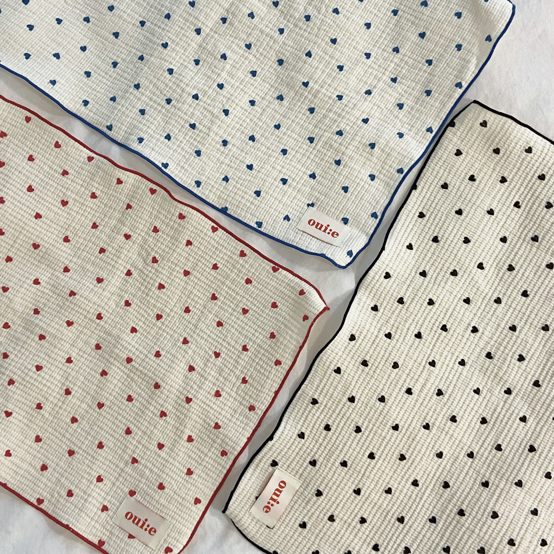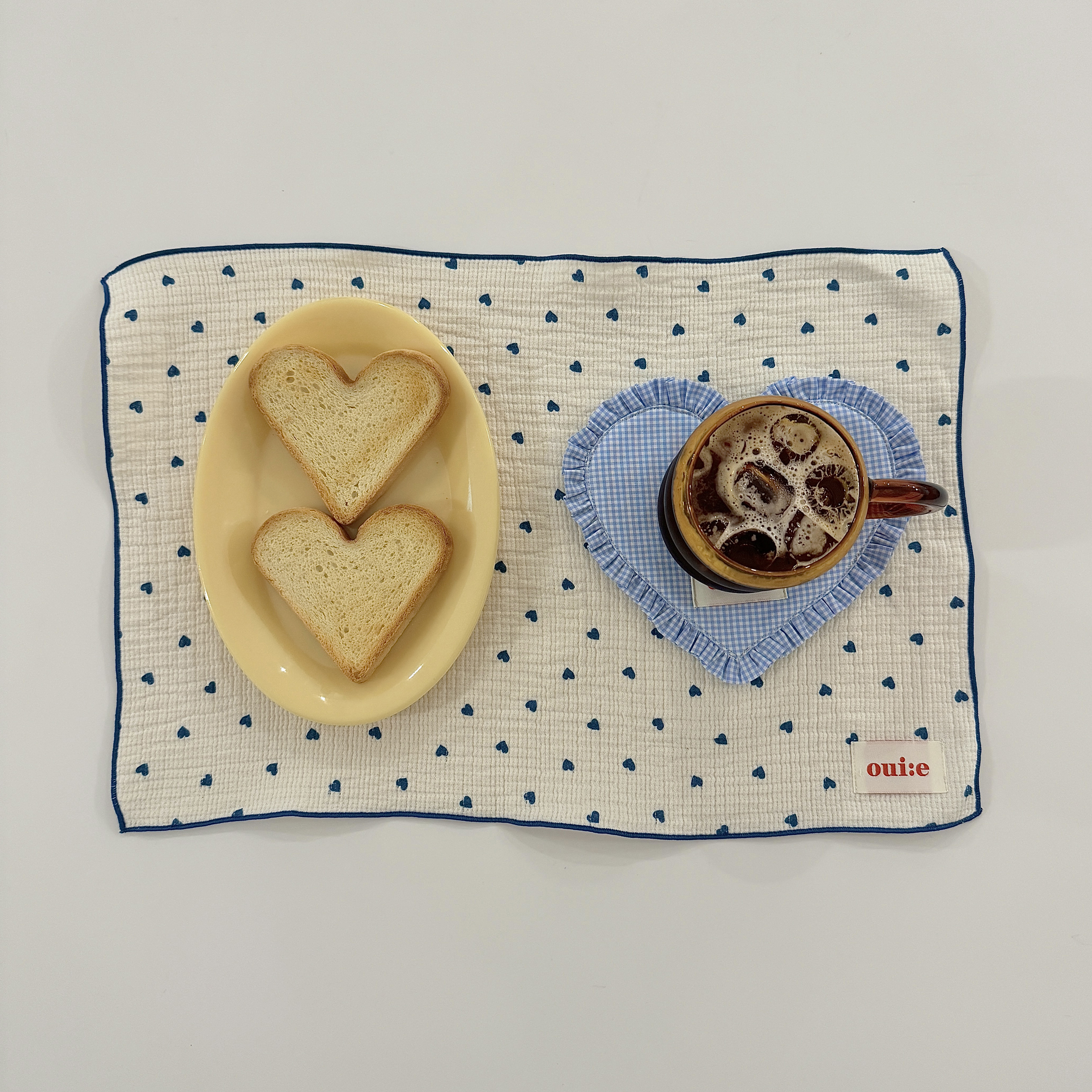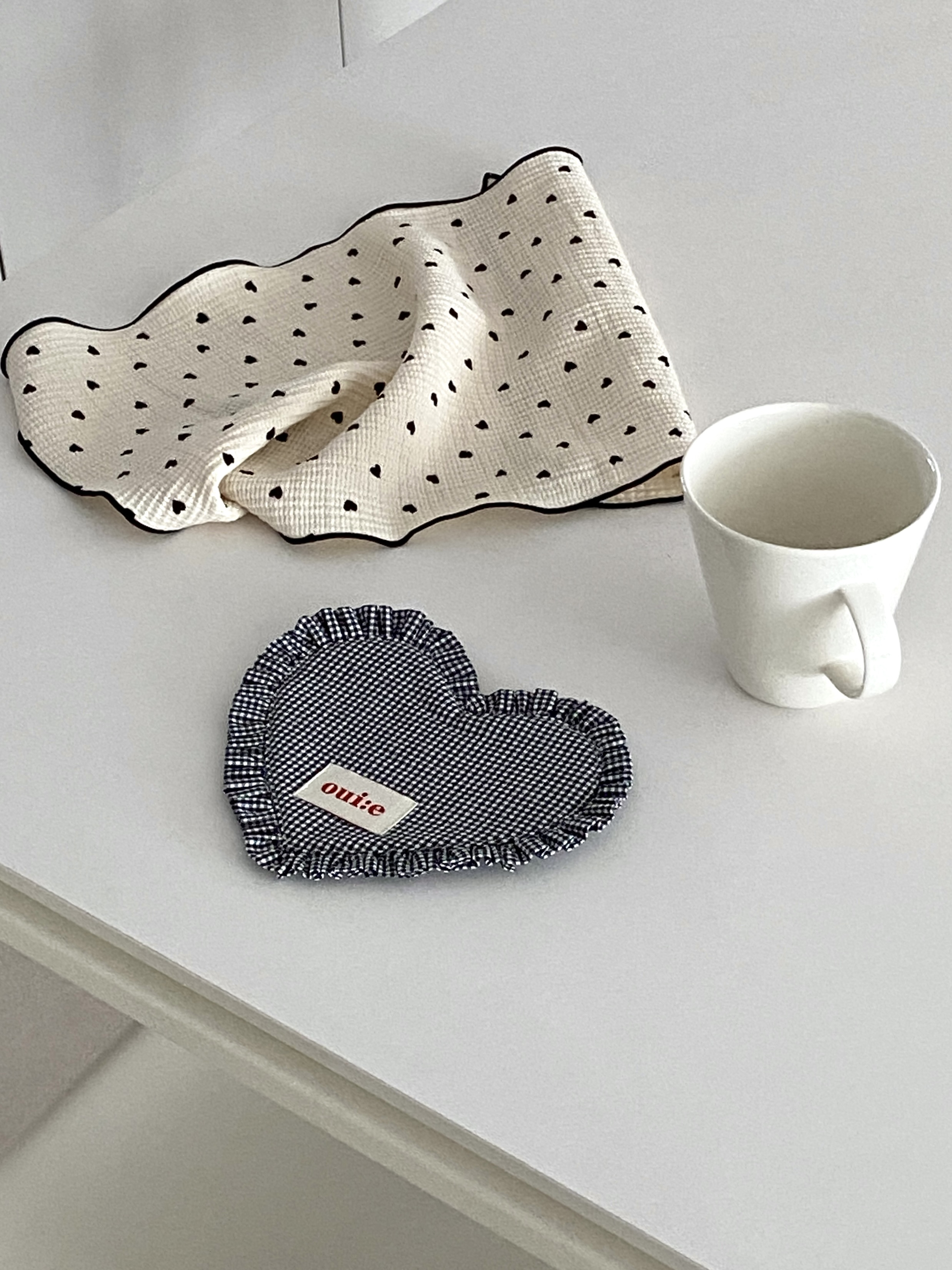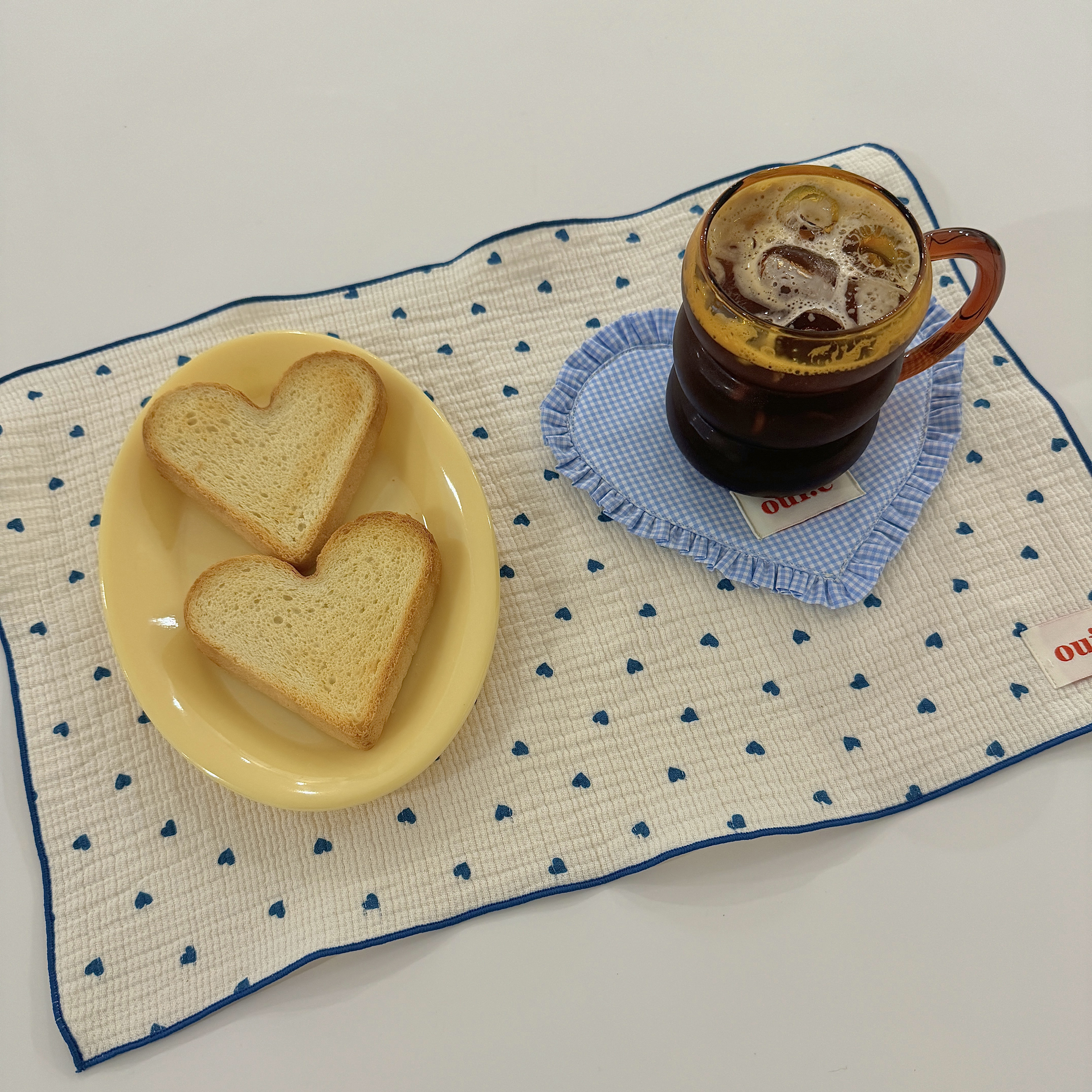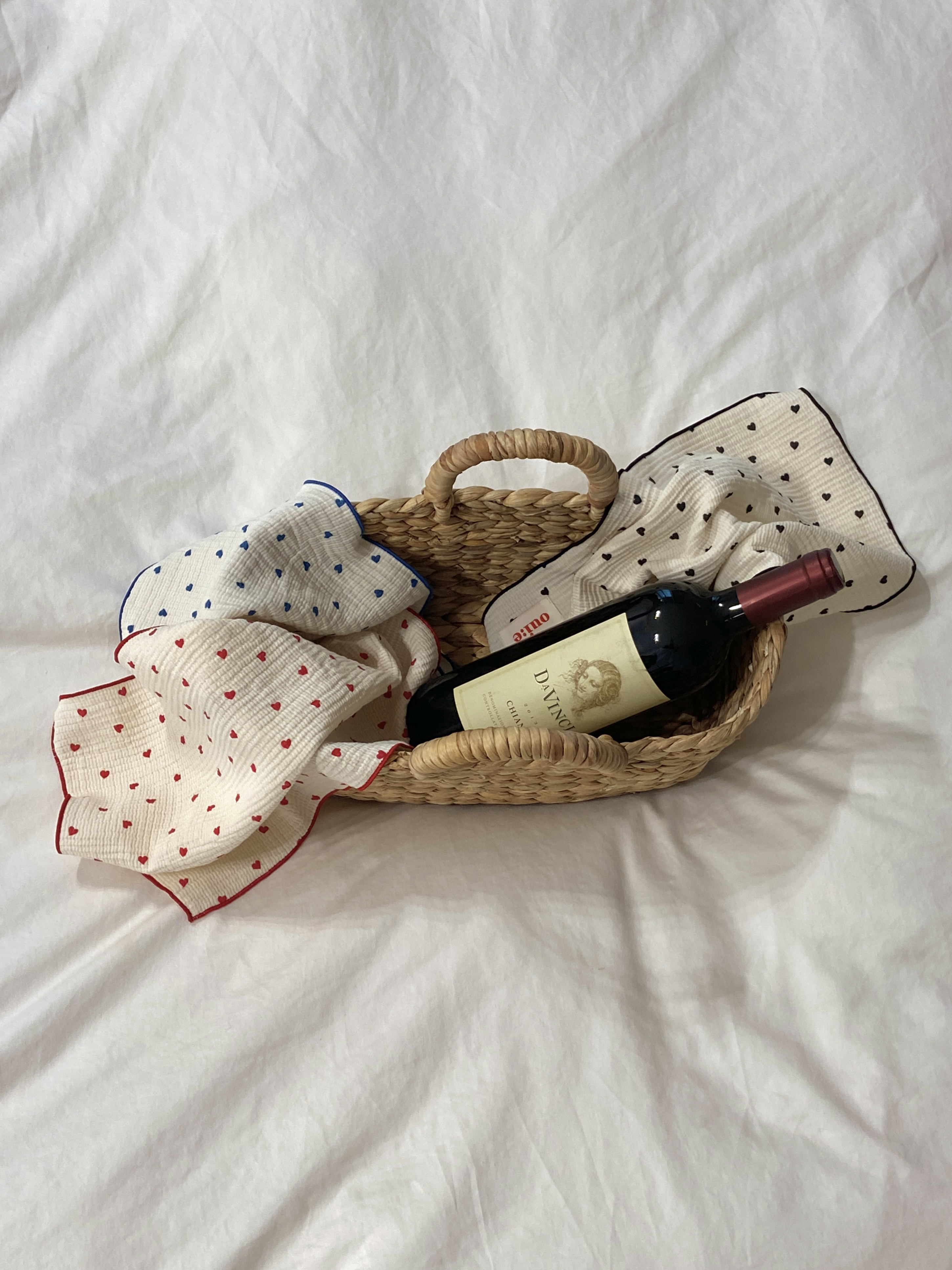 택배는 매주 월, 수, 금요일 발송됩니다. 참고바랍니다 :) [oui:e] ; 위에 어느 곳 '위에' 올려두어도 분위기와 어우러질 다양한 제품군을 만나보세요. 귀여운 하트 키친크로스가 제작되었어요♥ 너무도 사랑스럽고 귀엽습니다? 키친크로스는 다용도로 사용이 가능해요. 부드러운 면원단이라, 가벼운 핸드타올로도 좋고 귀여운 패턴덕에 가전덮개로도 포인트되고 심심한 테이블웨어 아래에 테이블 매트로도 좋아요. 내가 사용하고 싶은 용도에 맞게 쓰셔요 ^^ 저는 주방서랍에 그득그득 두었다가, 테이블 매트로 혹은 핸드타올로 잘 쓰는 것 같아요. 이번에 촬영하다가 전자레인지에 딱맞길래 하나는 또 거기에 고정되었어요 ㅋ 쓸모있게 휘뚜루마뚜루 잘 쓰는 것이 좋은 것 같아요. 반할 준비 하시고, 구경하셔요 ^^ 사이즈 43cm x 30cm (1~2cm 오차 있을 수 있음) 소재 면거즈 100% 소재특성상 세탁후 약간의 수축이 있음 (망에 넣어 찬물세탁요망 / 건조기 사용불가) |