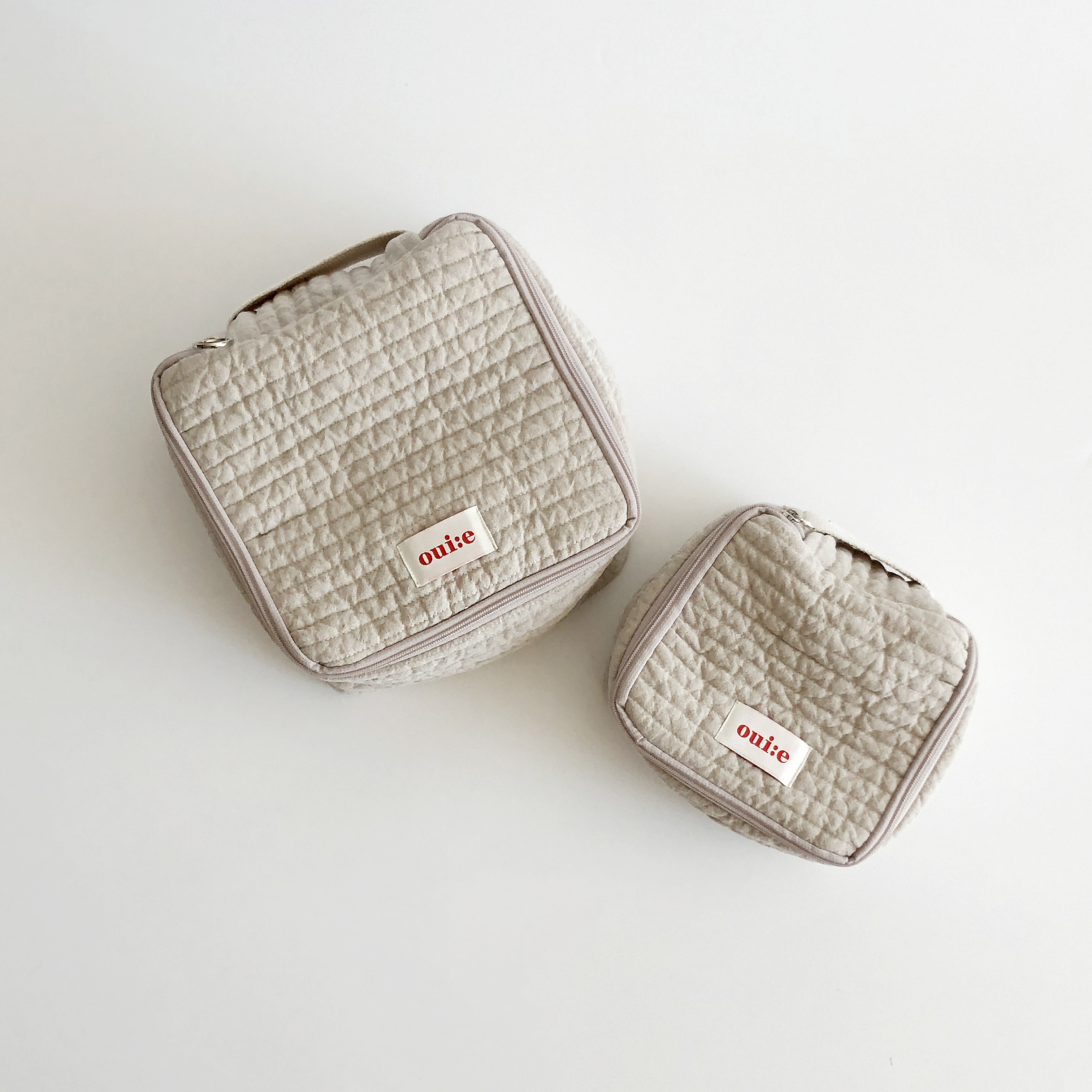 택배는 매주 월, 수, 금요일 발송됩니다. 참고바랍니다 :) [oui:e] ; 위에 어느 곳 '위에' 올려두어도 분위기와 어우러질 다양한 제품군을 만나보세요. 21년도에 출시했던 큐브파우치를 조금 다듬어 재제작된 파우치입니다. 기존에 충분한 고민과 샘플을 거듭하여 출시했던터라, 작은 디테일을 조금 바꾸었어요. 기존 사용했던 작은 지퍼고리 대신, 오링형태의 지퍼고리로 바꾸어 그립감을 조금 더 편하게 만들었어요. 다소 단조로워보이는 파우치 앞면은 포인트되는 [oui:e] 라벨을 부착했어요. 형태나 장식등 군더더기없이 깔끔하고 심플하게 제작되었어요, 파우치겸 이너백겸 소품용 등 사용자의 편의에 따라 다양하게 사용해보심을 추천드려요. 제가 정말 꾸주~~운히 잘 쓰고있는 잇템으로 적극 추천드려요. ^^ S사이즈에 아이들 간식류를 담기에도 딱이예요 S사이즈는에 화장품을 넣어도 넉넉합니다요. 이렇게 S사이즈 M사이즈 비교해보세요. :) 여행갈 때 이너백으로도 딱이죠? 사이즈 (수작업 공정상 약간의 오차는 있을 수 있습니다) M사이즈 : 16 x 16 x 10cm S사이즈 : 13 x 13 x 8cm 혼용률: 린넨 55%, 면 45% ** 발주시마다 원단 염색공정상 톤 차이 혹은 누빔 두께의 차이가 약간 날 수 있습니다. 세탁망에 찬물세탁/ 건조기사용불가 |