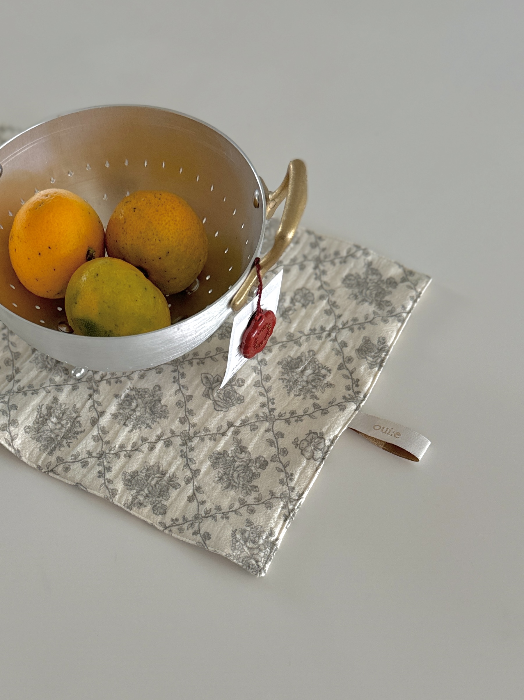 택배는 매주 월, 수, 금요일 발송됩니다. 참고바랍니다 :) [oui:e] ; 위에 어느 곳 '위에' 툭 올려두어도 분위기와 어우러질 다양한 제품군을 만나보세요. 부드러운 면100% 거즈소재로 고리형 키친크로스를 제작했어요. 은은한 컬러에 어우러질, 은은한 라벨도 제작해서 부착했답니다. 플라워패턴과 컬러감이 어우러져서 어디에 두어도 무드가 하나로 묻어날거예요. 긴 직사각형태라서 손타월로도, 미니 테이블매트로도. 덮개로도 사용하기 좋으실거예요. !! 첫 단독세탁 후 사용바랍니다 !! 망에 넣어 가벼운 찬물세탁 건조기 사용불가 면100% 약 20cm x 33cm 1~2cm오차가 있을 수 있습니다 |
