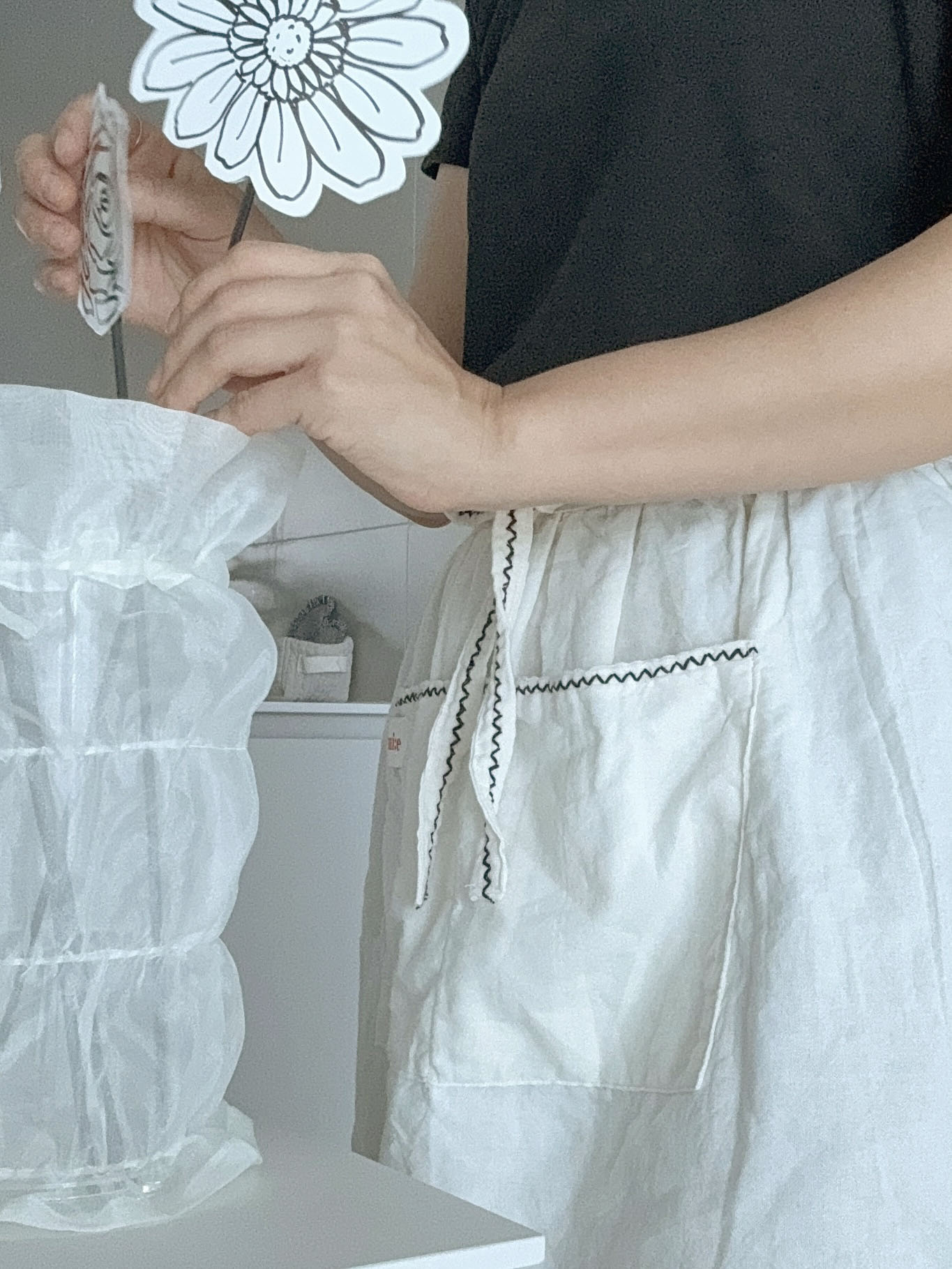 택배는 매주 월, 수, 금요일 발송됩니다. 참고바랍니다 :) [oui:e] ; 위에 어느 곳 '위에' 툭 올려두어도 분위기와 어우러질 다양한 제품을 만나보세요. 주문확인 후 제작되는 상품으로, 미리 제작해둔 재고가 없을 시 주문일로부터 3~4일 걸릴 수 있습니다. 원하는 날짜가 있을 시, 미리 톡톡문의 바랍니다 소재부터 디자인까지 빠지지않는 앞치마 소개해드릴게요 ^^ 무형광 무표백의 소창소재로 제작된 앞치마예요. 통기성도 좋고 건조도 빨라서 균번식도 적어 위생적이예요. 섬유먼지도 적어서, 요리할때도 최고예요. 손씻고 허벅지 팡팡 치고 다시 또 요리 휘리릭하면 이런 휘뚜루마뚜루가 없어요. 호주머니도 양쪽으로 있어서, 양쪽 구분해서 무언가를 보관해도 되요. 풀기를 빼는 삶는 정련과정을 거쳐서 보내드려요. 망에 넣어서 세탁기 돌려도되고, 삶을수록 뽀얗고 더욱 부드러워지는 부드럽고 가벼운 소재입니다. - RED - - BLACK - SIZE 가로 약 45cm (끈제외) 기장 약 77cm 강화소창 * 공정 모두 수작업인 특성상, 자수형태가 동일하게 균등한 형태가 아닙니다. *소창소재의 특성상, 화학적 표백이 없어서 목화씨(검은점)이 소재에 보일 수 있습니다. |