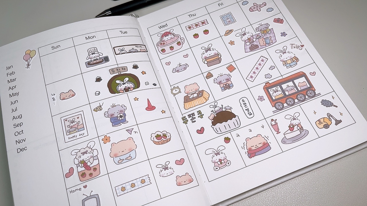 미니스티커로 귀엽고 아기자기해서 꽉꾸와, 기록형다꾸에는 포인트로