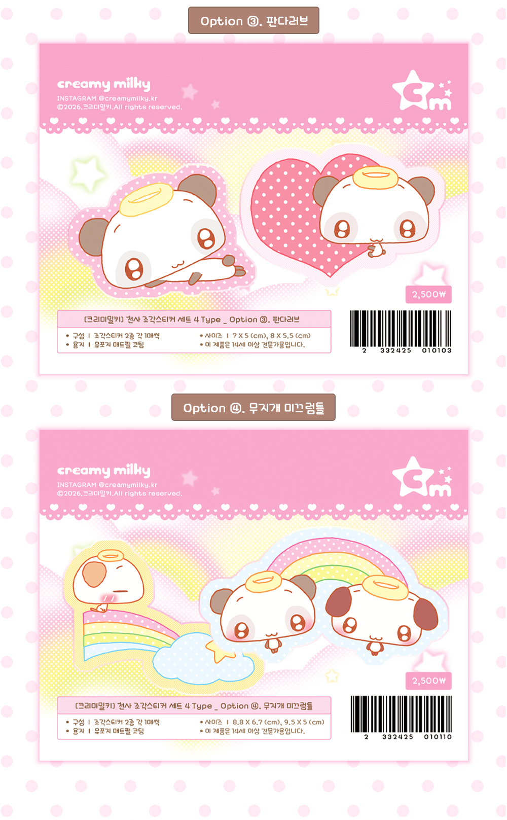 [크리미밀키] 천사 조각스티커 세트 4Type_Option3.판다러브