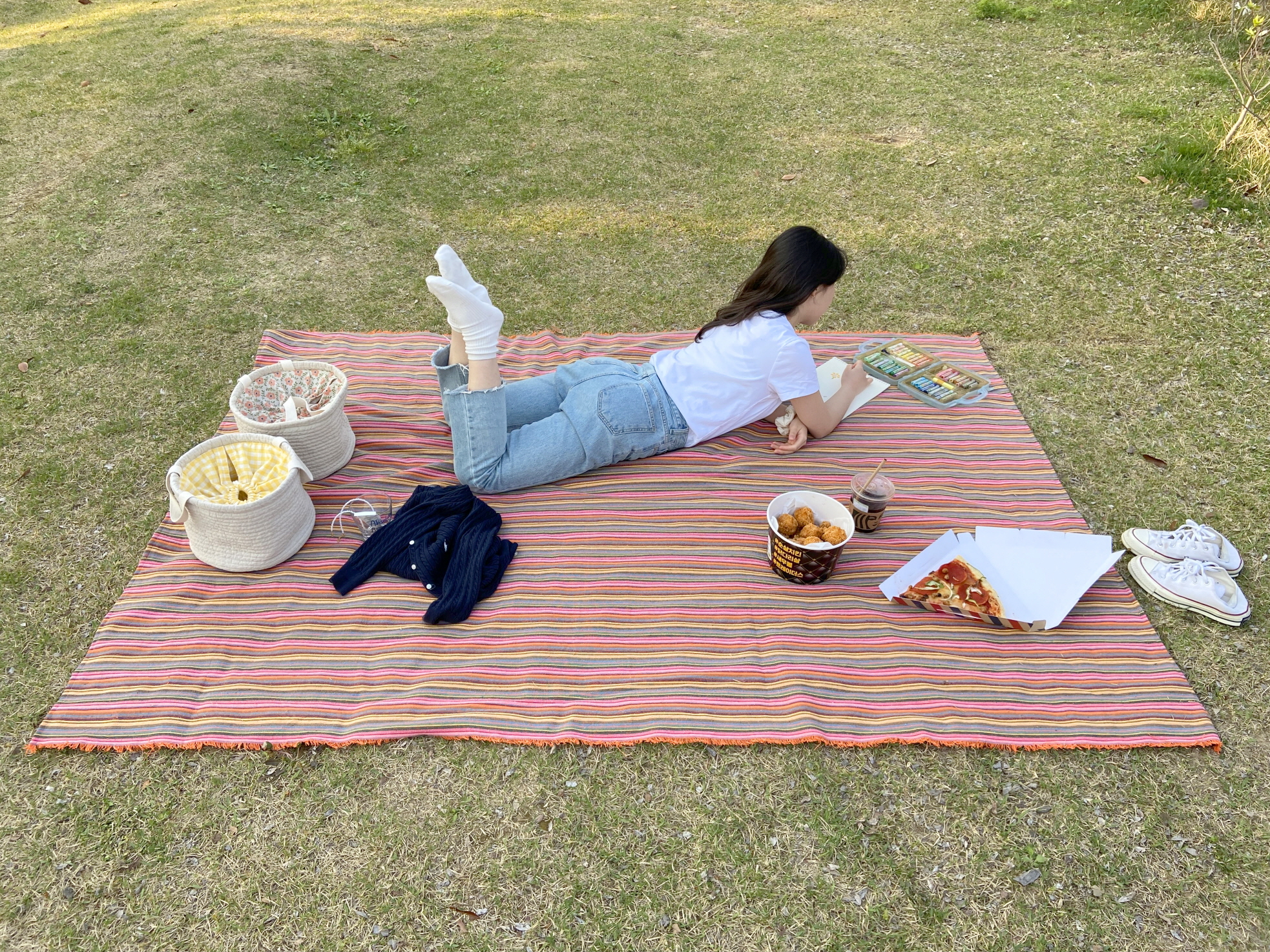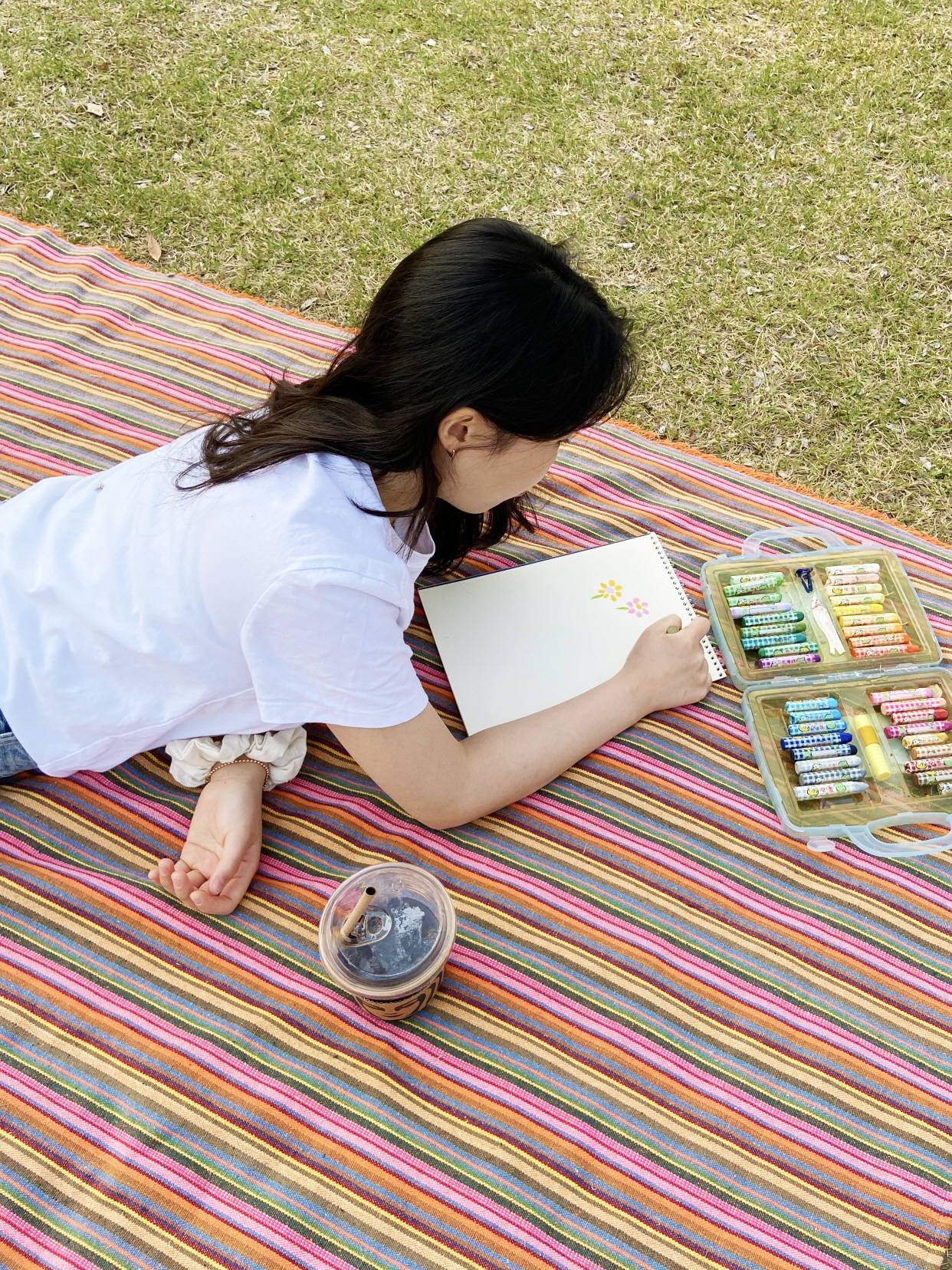 택배는 매주 월, 수, 금요일 발송됩니다. 참고바랍니다 :) [oui:e] ; 위에 선주문 후제작 상품으로, 약 3~4일 정도 소요됩니다. (공휴일제외) 당일발송은 불가하오니, 신중한 구매 부탁드립니다. 디자이너 엄마와 공방을 운영하는 할머니가 따뜻한 마음으로 전해드리는 마마앤그랜마입니다. 원단보고 색감에 반해서 만들게된 두루두루 사용될 매트를 보여드릴게요. 방에 가벼운 러그로 혹은 피크닉매트로 혹은 인테리어소품으로 내 편의에 따라 멋지게 보여주세요. 방수원단은 아닙니다. 본원단과 방수원단이 테두리만 봉제되어 밀착되지않아 중앙이 붕 뜨는게 싫더라구요. 그렇다고 자체방수원단은 코팅이 되어있다보니, 제 갬성과 맞지않구요 ㅠ 대신 도톰한 두께감이 있어요. ^^ 이 매트 이미 여러번 사용했지만, 피크닉끝내고 모래, 풀 모두 팡팡팡 털어서 다시 재사용하기도하고, 팡팡팡 털어서 세탁기 돌리기도 했어요. 사이즈는 두가지예요. 비교사진 잘 살펴보시구요.. 제 갬성 따라가실분은 여기여기 붙으세요~!! **패턴원단의 제작공정 특성상 사진과 패턴위치가 틀릴 수 있습니다** 사이즈 비교사진 S는 150x130, M은 150x225 입니다. ** 추가옵션 ** 파우치는 제작공정 및 원단소요량도 생각보다 많은터라, 진행여부도 고민이었어요. 근데 파우치가 너무 귀엽다보니, 진행안할수 없겠더라구요..ㅠㅠ 색감.. 아시죠? 색감깡패.. 파우치 겉면에 색감을 보여주고싶은 마음에 추가옵션을 달고 진행하기로했어요. 가격적인 면이 참 어려웠는데, 세트로 했을때도 가격부담이 없었으면 해서, 제작공정과 원단비 맞춰서 착한가격으로 진행해요. 이 감성 아시는 분들은, 스트라이프 파우치 겟겟. **패턴원단의 제작공정 특성상 사진과 패턴위치가 틀릴 수 있습니다** **조도와 모니터에 따라 색상의 차이가 있을 수 있습니다** 사 이 즈 ( 수작업 공정상 약간의 오차는 있을 수 있습니다 ) M 사이즈 : 150 x 225 cm S 사이즈 : 150 x 130 cm 혼용률: 면 60% 폴리 40% 찬물세탁/ 건조기 사용불가 |