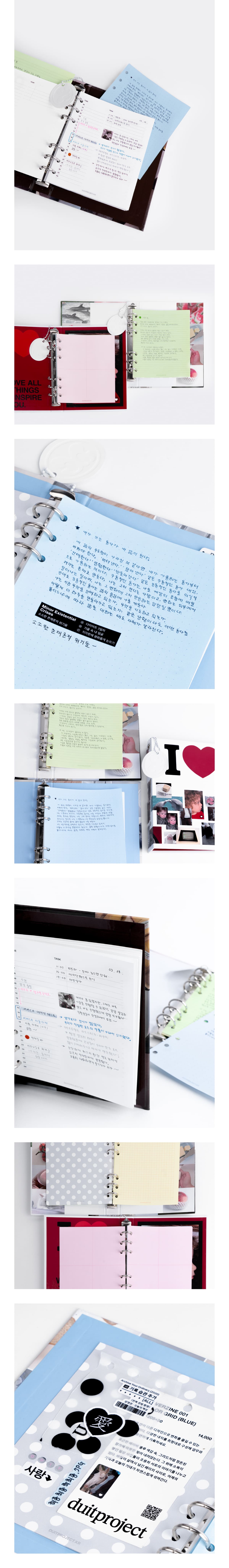 스크랩뿐만 아니라 기록까지 편히 쓸 수 있는 구조를 연구해 규격화된 종이 사이즈가 아닌 더트프로젝트만의 설계 구조를 담은 비규격 사이즈로 제작되었습니다.