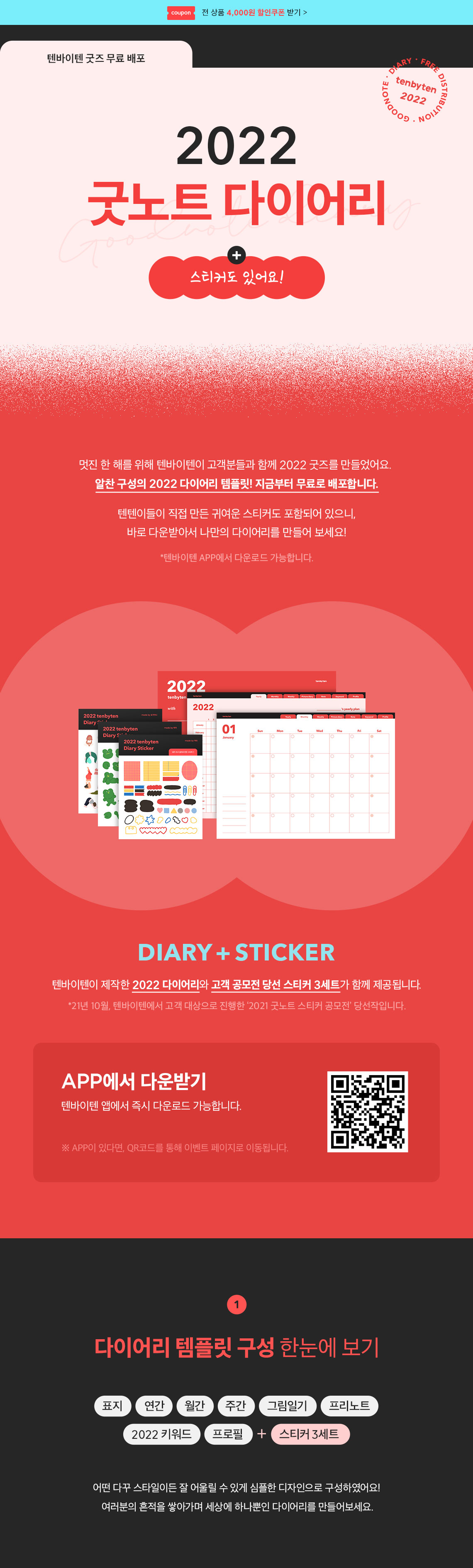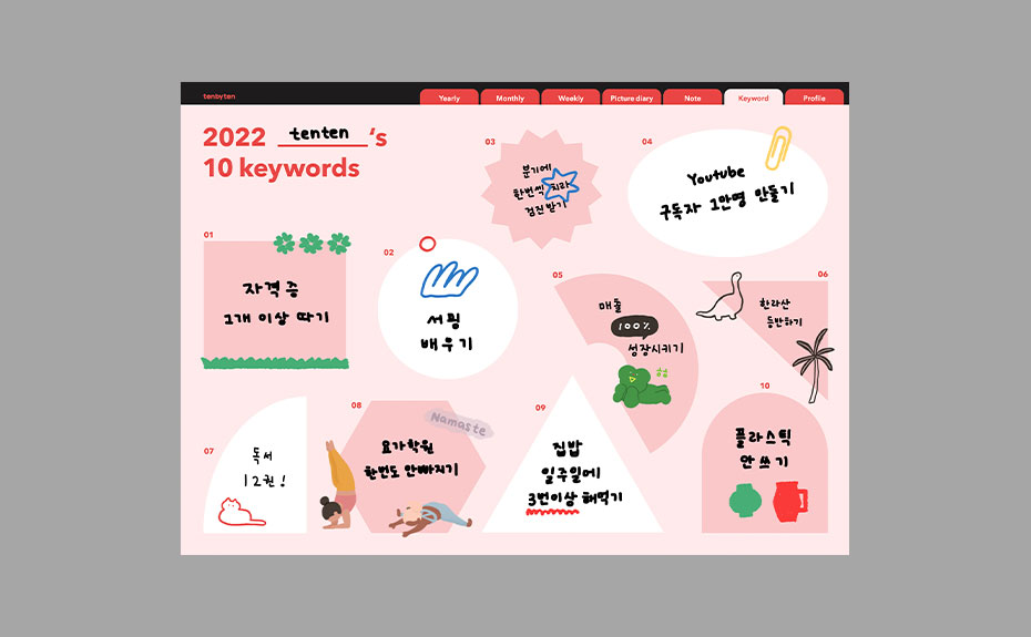 텐텐이들에게 무료로 다이어리 템플릿을 배포합니다. 알찬 구성을 확인하세요!