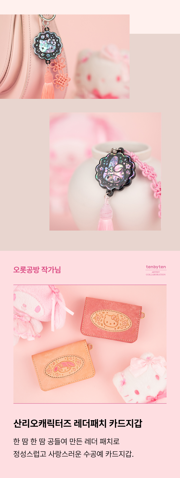 산리오캐릭터즈 핑크블라썸 레더패치 카드지갑