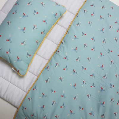치수 : 베이비 블랭킷(6온스 누비이불) 85 x 105 cm / 베개커버(누빔) 40 x 25 cm 또는 50 x35cm / 낮잠이불용 양면패드(10온스) 70 x 130 cm