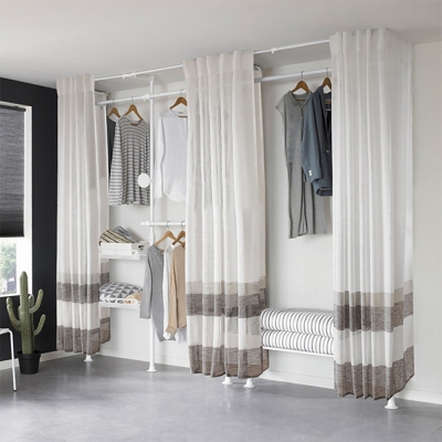 주요 소재 : 기둥 / 옷걸이 가로봉 - 스틸파이프, 기타 - 합성수지, 선반-철재/PE코팅, 행거커튼 - 폴리에스테르