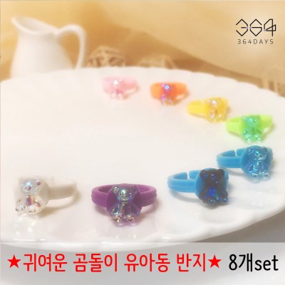 품명 및 모델명 : 8개set 귀여운 곰돌이 반지 유아동 어린이 우정반지 반지세트