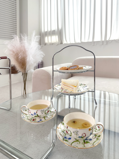 [티세트] 티로직 플로라떼 골드림 2인 트리오세트 4P(컵소서 2p, 접