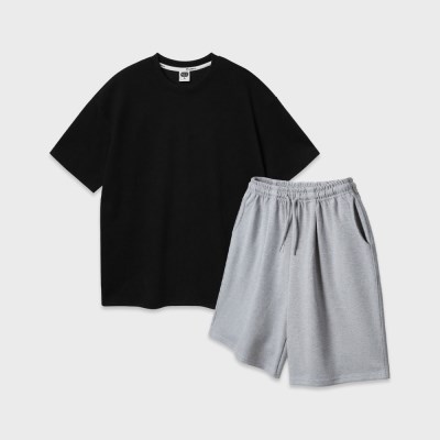 [SET] 앨빈클로 더블코튼 오버핏 반팔티 무지 와이드 벌룬핏 밴딩 하 | 텐바이텐