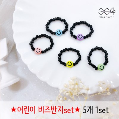 품명 및 모델명 : 5개set 스마일 블랙 비즈반지 어린이 우정 커플 유아동 반지세트
