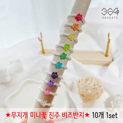 품명 및 모델명 : 10개set 무지개 미니꽃 진주 비즈반지 어린이 우정 반지세트