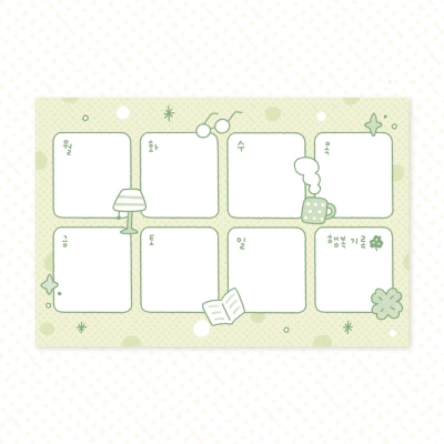 그림이 넘 귀여워요. 밑 쪽을 조금 잘라서 a7 다이어리 속지에 붙여서 사용 중인데 디자인도 크기도 마음에 들어요!