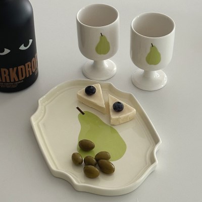[제철식기:배] 접시+와인잔 세트