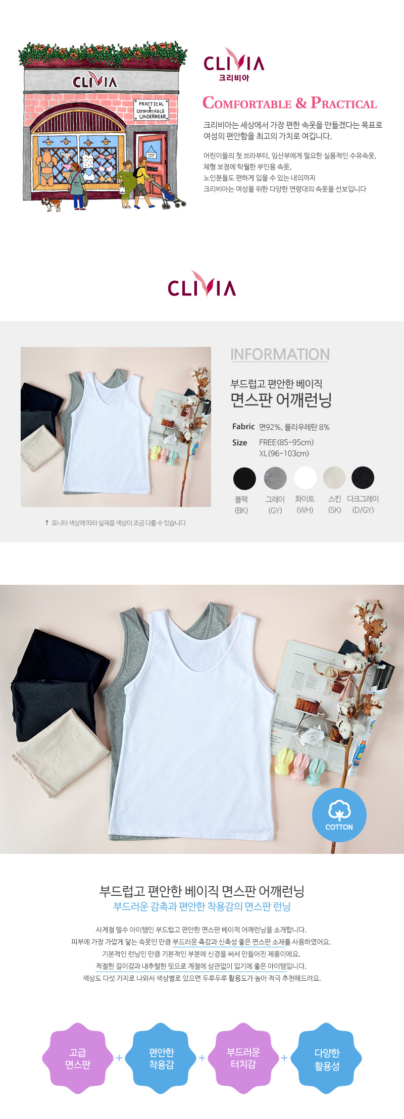 사계절 필수 아이템인 부드럽고 편안한 면스판 베이직 어깨런닝을 소개합니다.