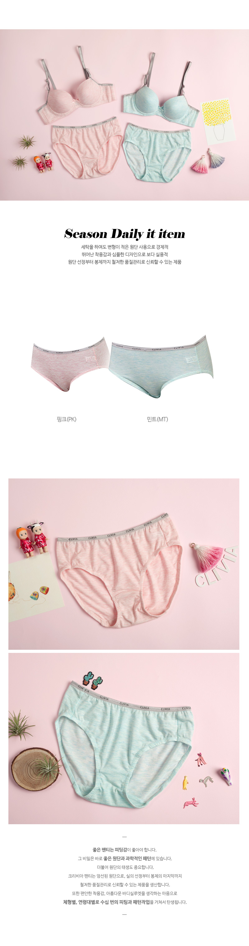 헴라인으로 처리되어 겉옷에 팬티자국이 표시가 나지 않아요.