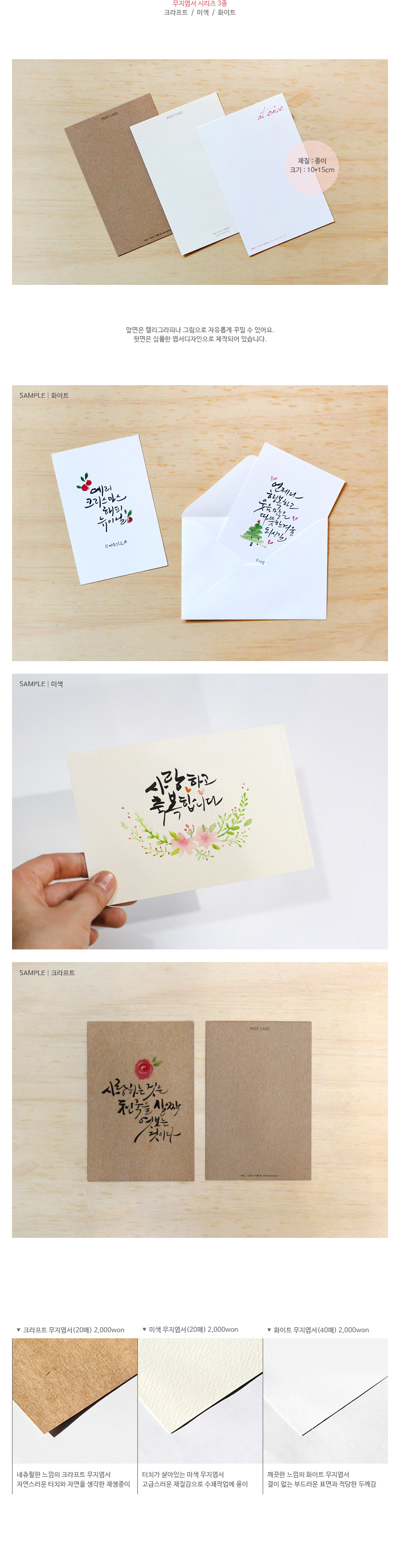 캘리그라피나 일러스트로 꾸며서 쓸 수 있는 화이트 무지엽서 40매