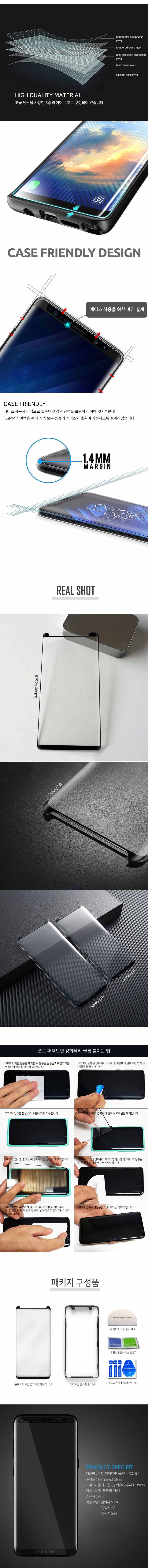 1. 액정 전체 부착형 풀커버 강화유리 제품.