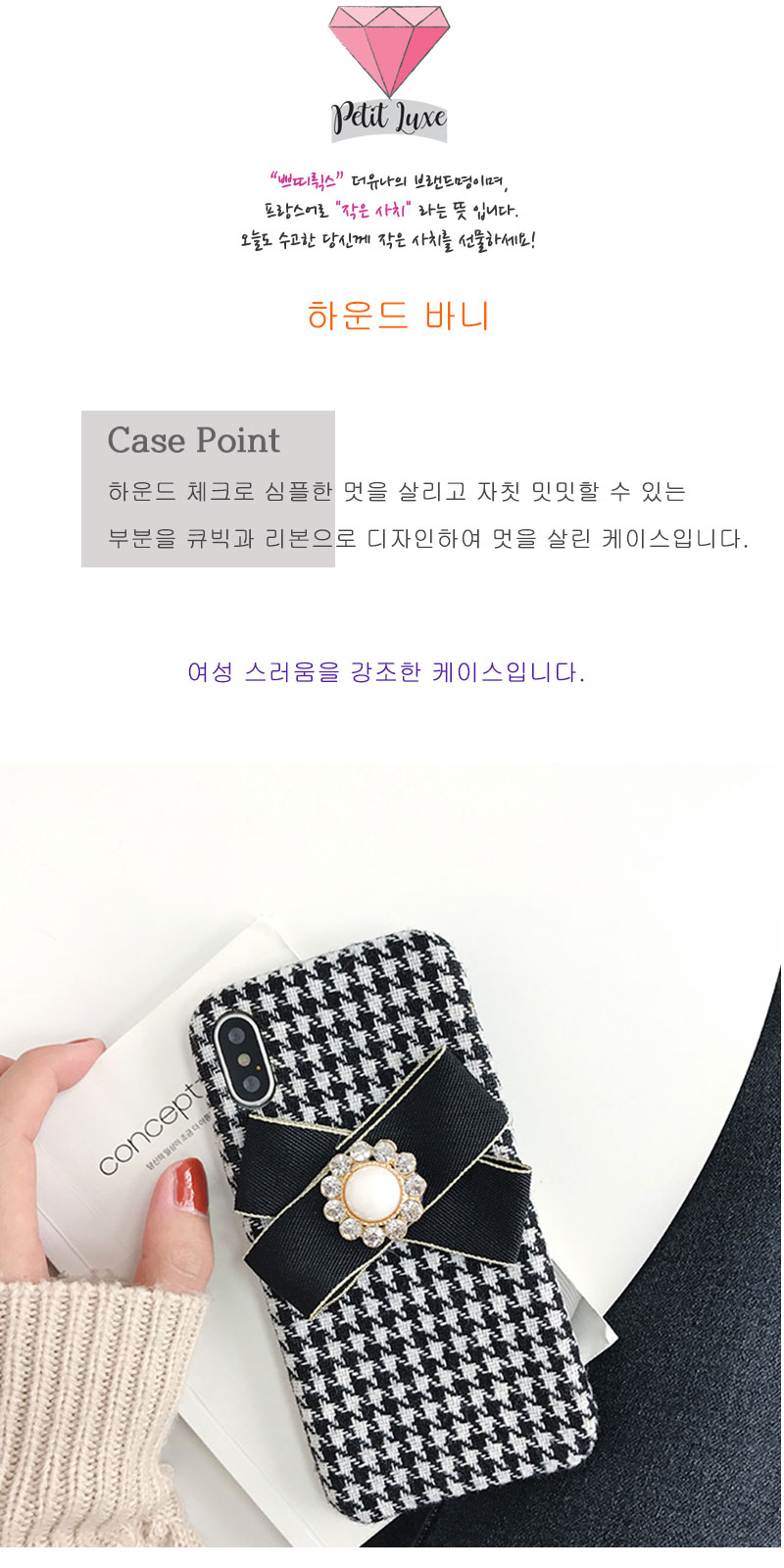 여성스러움을 강조한 깔끔한 체크 케이스입니다.