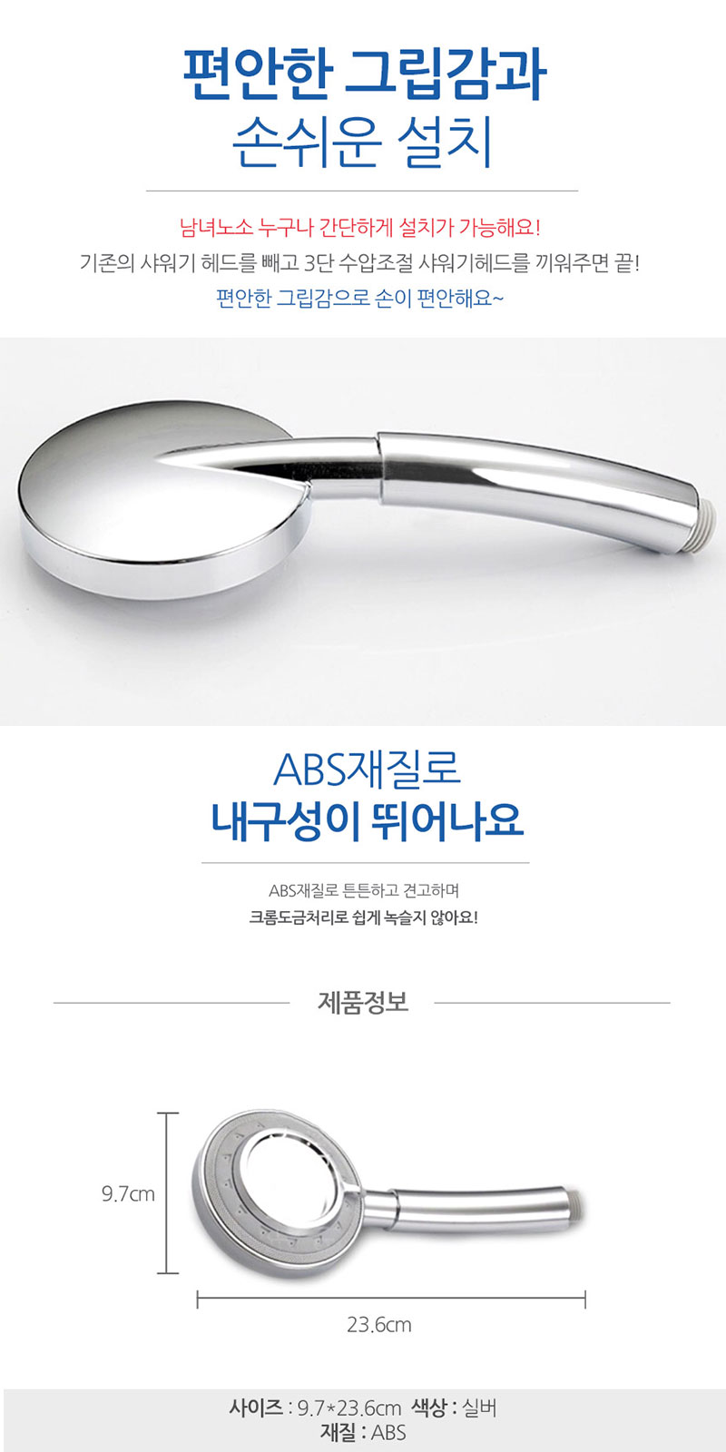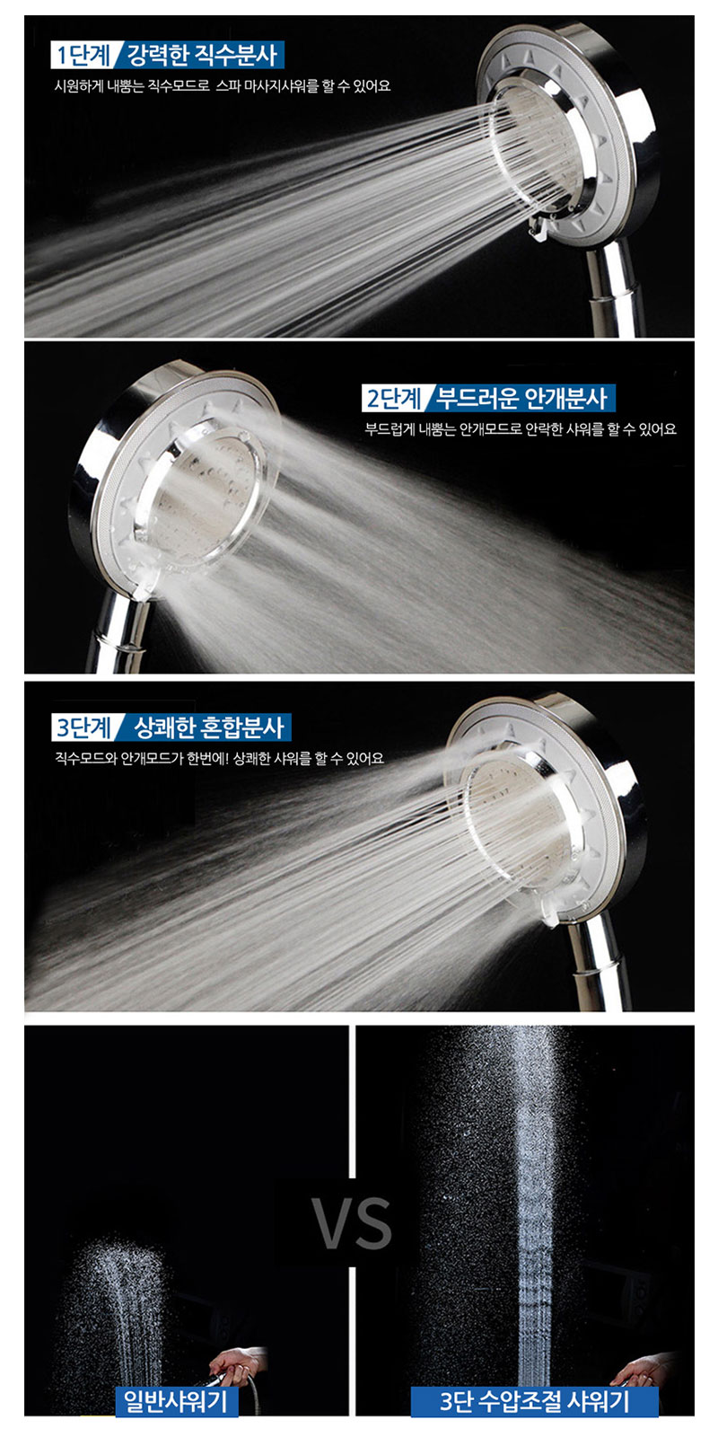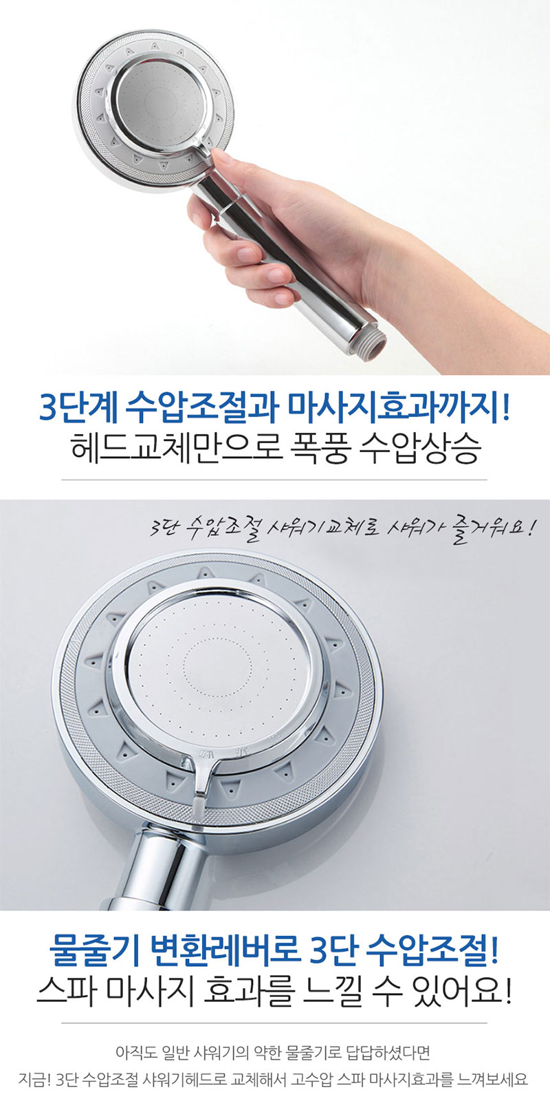 강력한 수압을 3가지로 조절할 수 있는 제품입니다