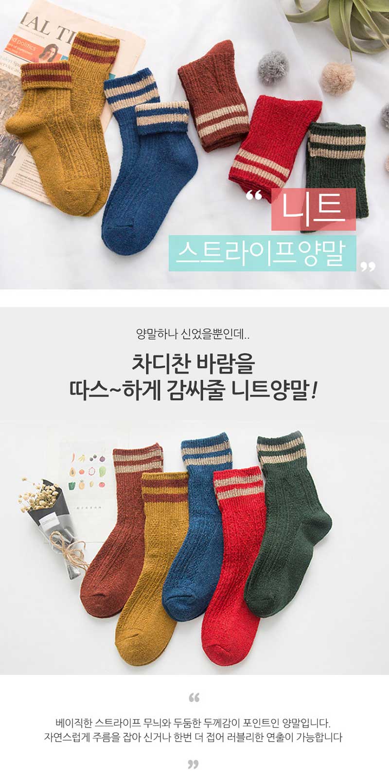 두툼하지만 불편하지 않은 패션양말입니다.