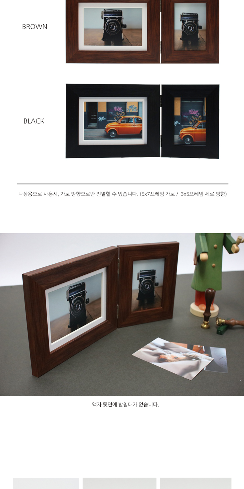 두 가지 크기의 사진을 같이 넣을 수 있는 액자입니다. 5x7 크기와 3x5 크기의 사진을 동시에 넣으실 수 있으며, 5x7 사이즈용 액자 부분은 여백 마운트의 여부에 따라