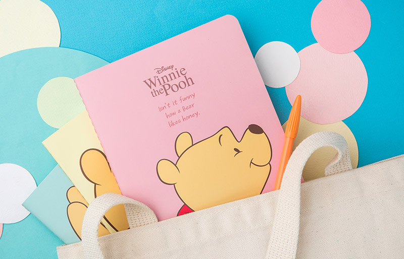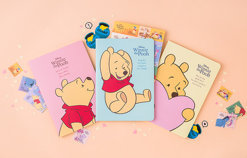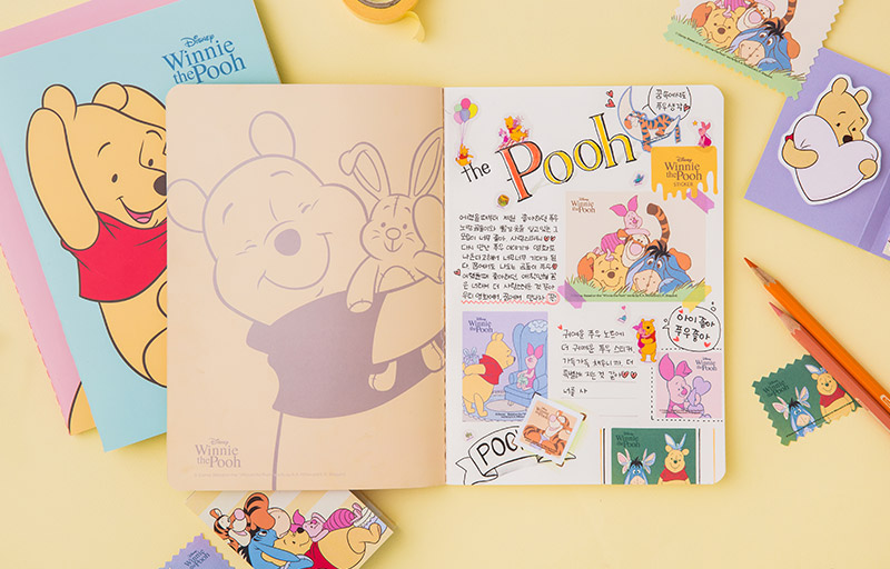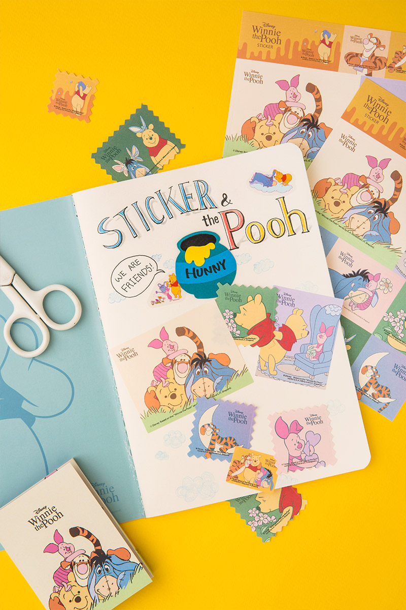 3가지 타입의 스티치노트 중 한권을 고르시면, 노트 안에 사랑스러운 푸와 친구들의 스티커 1장이 들어있답니다.