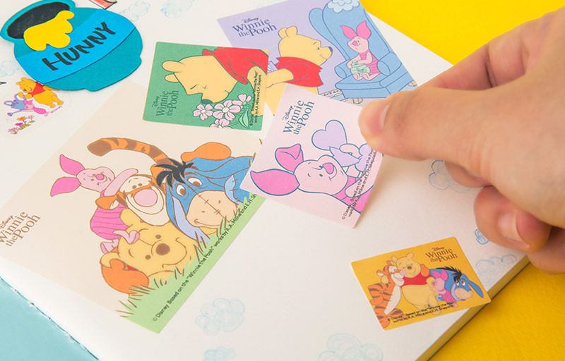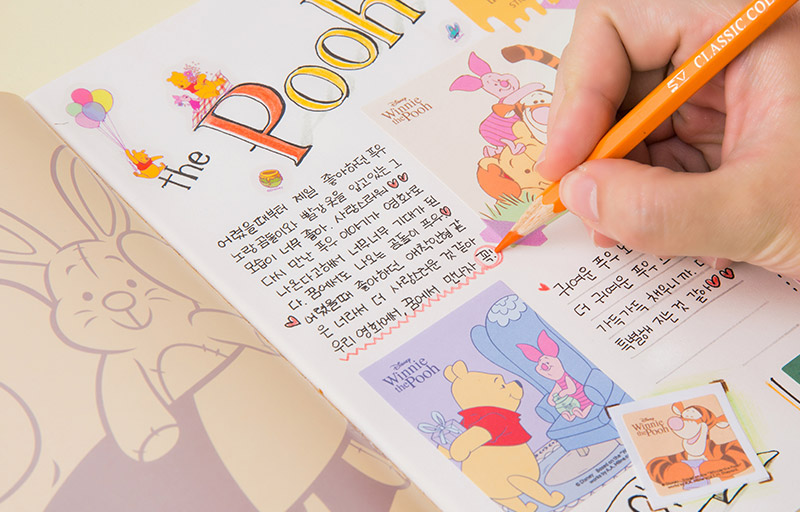 * 스티커: 1장의 스티커에 총 11piece 로 구성되어 있습니다. 모조지에 인쇄된 스티커는 따뜻한 위니 더 푸를 감성적으로 와닿게 합니다.