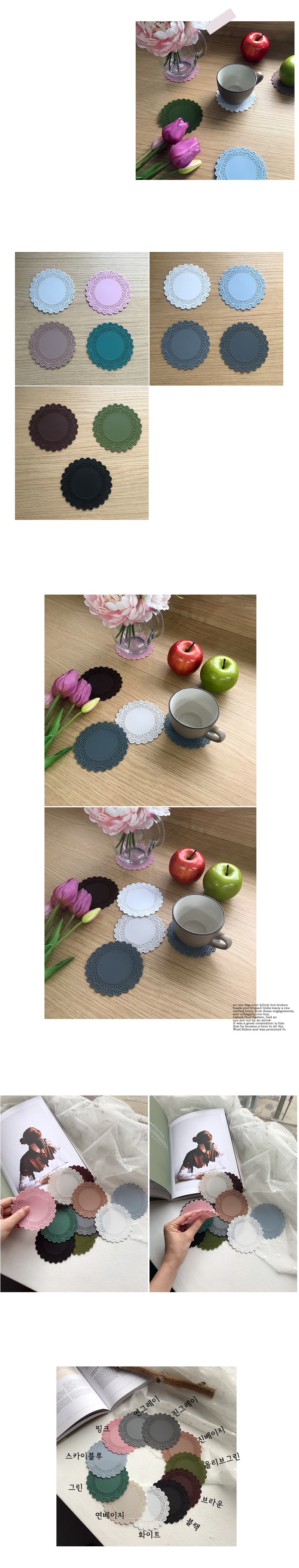 * 도일리 실리콘 컵받침 코스터(11color) 고급스러운 파스텔 색상의 친환경 실리콘 컵받침입니다. 국내에서 생산된 깔끔한 제품으로 바닥에 밀착이 잘 되며 열전도율 낮아 편리하게 사용하실 수 있습니다. 세척하기 쉽고 끓는 물 소독이 가능해서 세균, 환경호르몬 걱정이 없어요!! 화이트, 진그레이, 연그레이, 진베이지, 연베이지, 올리브그린, 그린, 브라운, 핑크, 스카이블루, 블랙 11color 중 선택해 주세요. * 사이즈 : 지름10 x 높이0.2cm * 재질 : 실리콘 * 구성 : 컵받침 1개 ![]() |