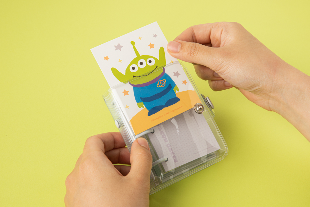 표지의 키링 구멍에 키링을 딸랑, 키링으로 귀여운 포인트를 더할 수 있어요!