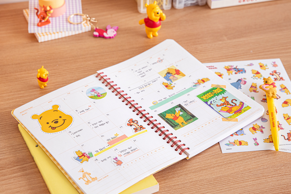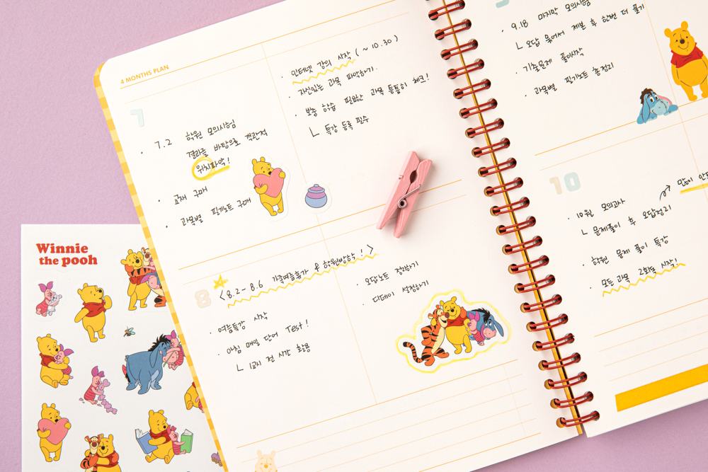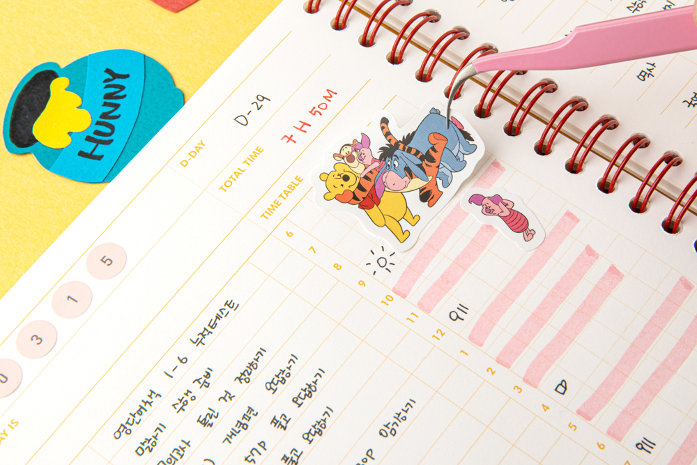 푸 스티커로 플래너에 귀여움을 더해보세요.
