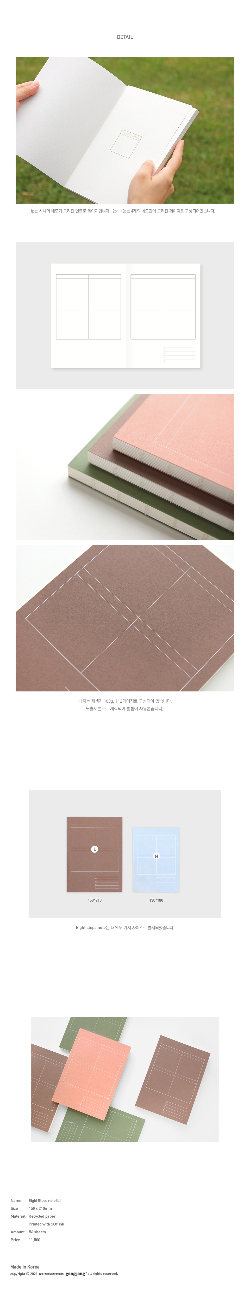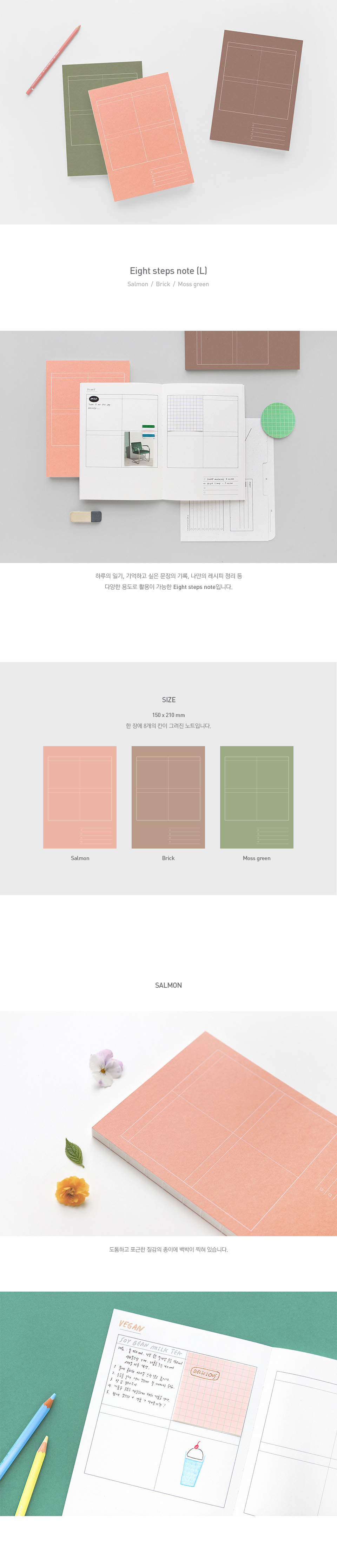 다양한 용도로 활용이 가능한 Eight steps note입니다.