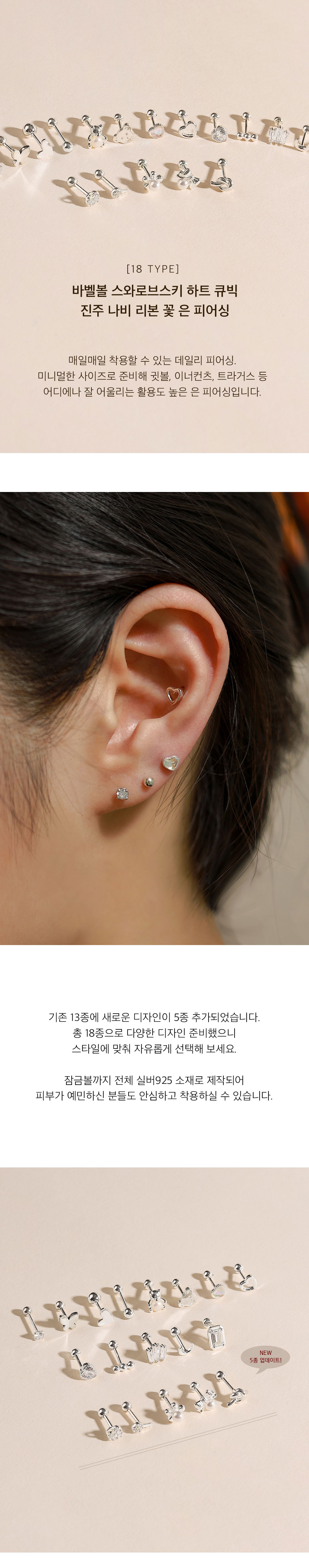 어니에나 잘 어울리는 활용도 높은 실버 피어싱입니다.