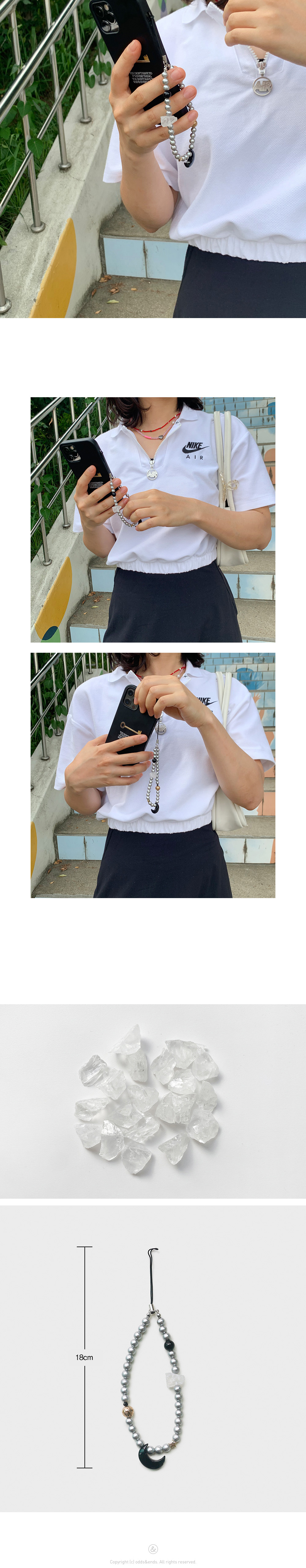 그레이 베이스의 모노톤 색감과 진주, 원석 등의 소재 조합으로 고급스러운 폰 스트랩입니다.
