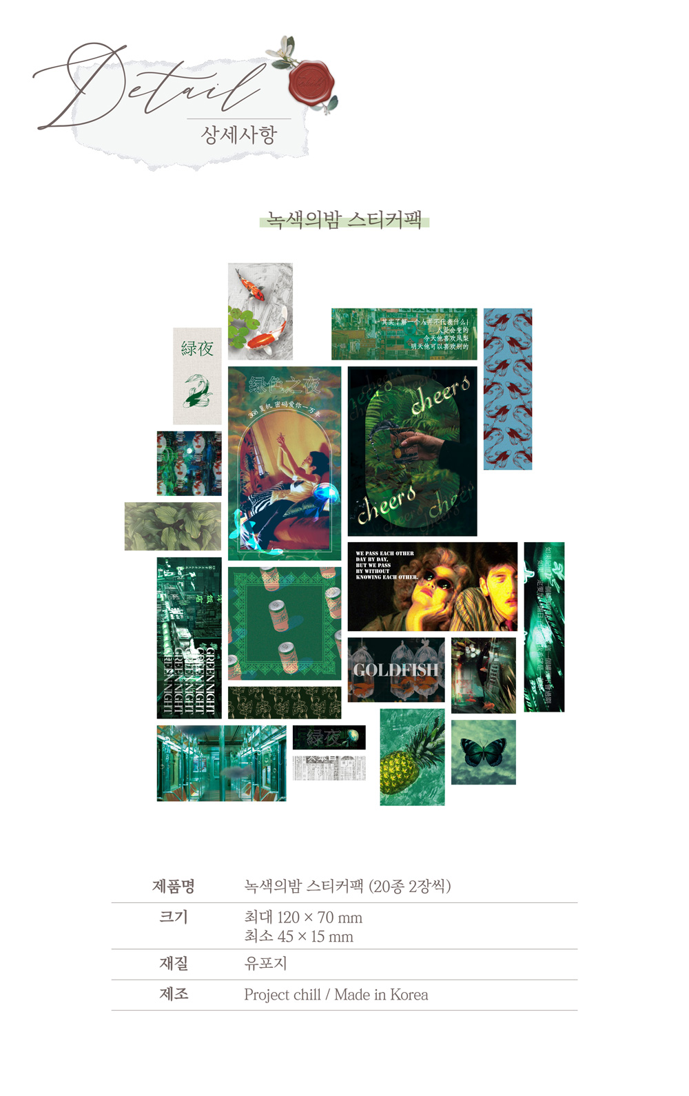 다양한 크기와 모양의 홍콩영화 감성의 스티커가 잔뜩 들어가있는