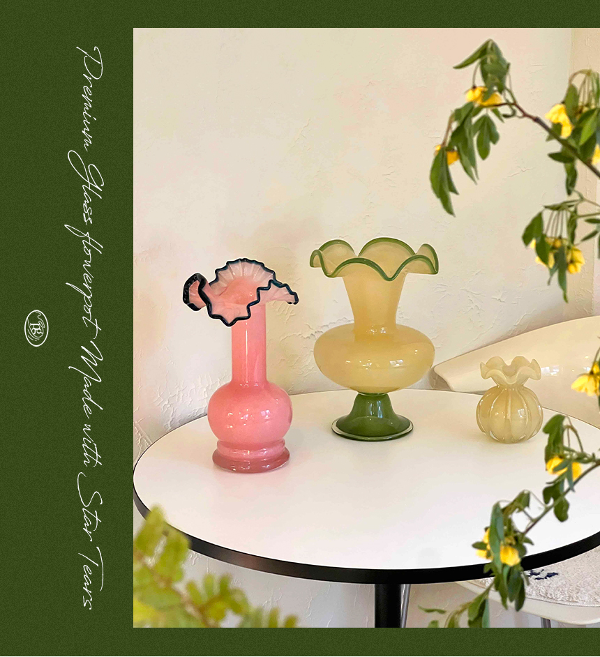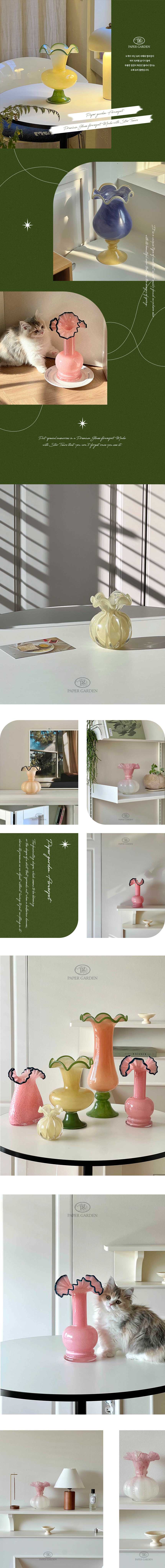 | - Product information - 페이퍼가든 별의 눈물 불어서 만든 프리미엄 유리 꽃병을 소개합니다. 도색이 아닌 유리 자체의 컬러감이 마치 옥처럼 윤기가 돌며 두툼한 질감이 특징인 불어서 만드는 수제 유리 꽃병입니다. 봄날의 기운을 한아름 품은 색감과 그 어디에도 쉽게 찾아볼 수 없는 자유롭고 아름다운 형태를 자아내며 묵직하고 존재감이 넘칩니다. 입구 쉐입이 난이도가 가장 높으며 이 꽃병의 가장 큰 매력포인트이기도 합니다. 꽃이 피어나는 것 같기도 하고, 발레리나가 춤을 출 때 퍼지는 스커트의 모양 같기도 한 매혹적인 쉐입은 아무것도 꽂아두지 않아도 하나의 오브제로써 빛납니다. 균일한 형태로 레이스처럼 퍼지는 형태와 바람 결에 풍성하게 날리는 형태, 두 가지 흔하지 않은 유니크함과 특유의 빈티지한 매력은 소장을 하기에도, 독특한 선물로 주기에도 매우 적합합니다. 한 번 보면 잊혀지지 않을 별의 눈물 불어서 만든 프리미엄 유리 꽃병에 특별한 기억을 담아보세요. |