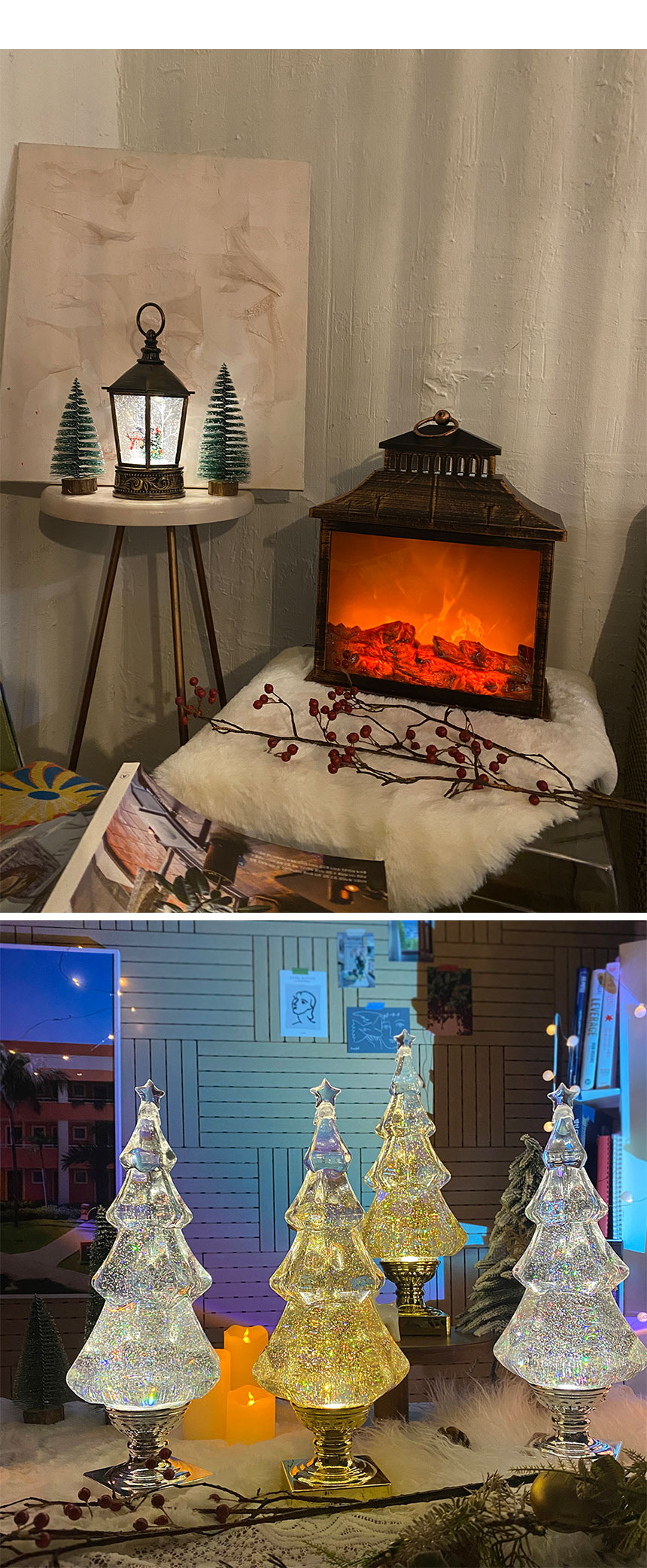 차렌시아 랜턴모양 스노우볼 무드등 원형 육각 램프 하우스 산타 눈사람 사슴 크리스마스