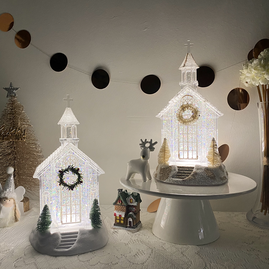 크리스마스 반짝이는 교회 스노우볼 무드등 워터볼 성탄절 선물
