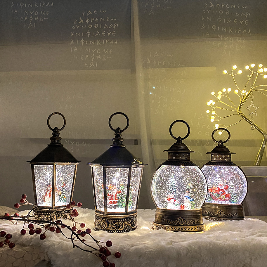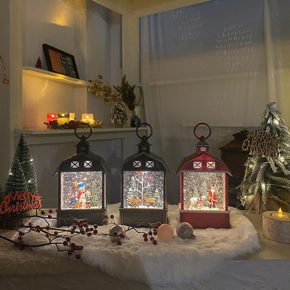[차렌시아] 랜턴모양 스노우볼 시리즈 크리스마스 산타 눈사람 사슴 오르골 워터볼 무드등