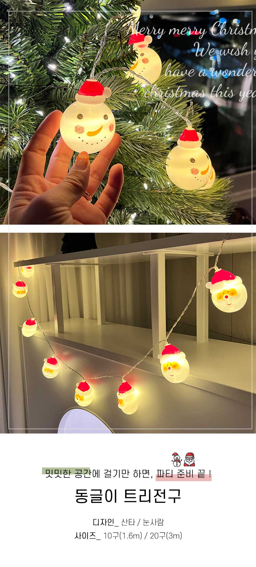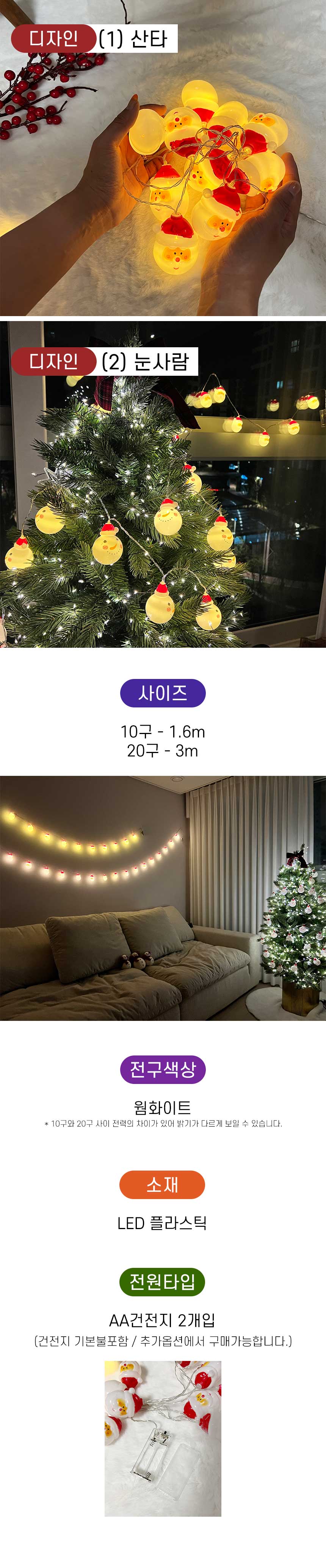차렌시아 산타 눈사람 동글이 전구 10구 20구