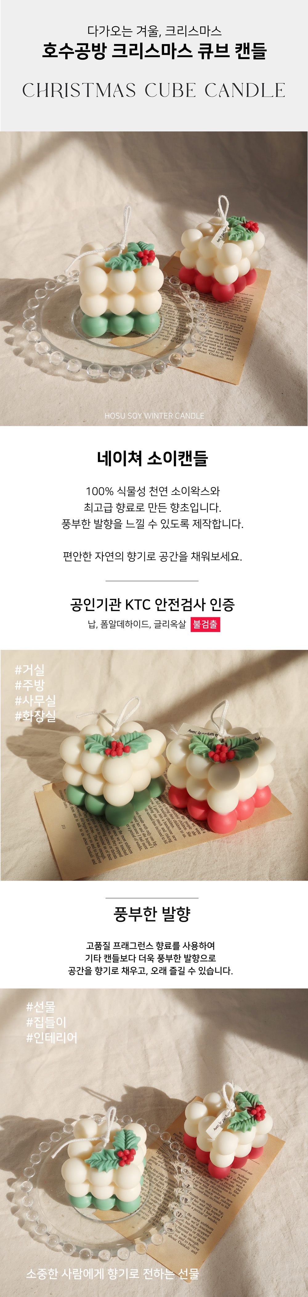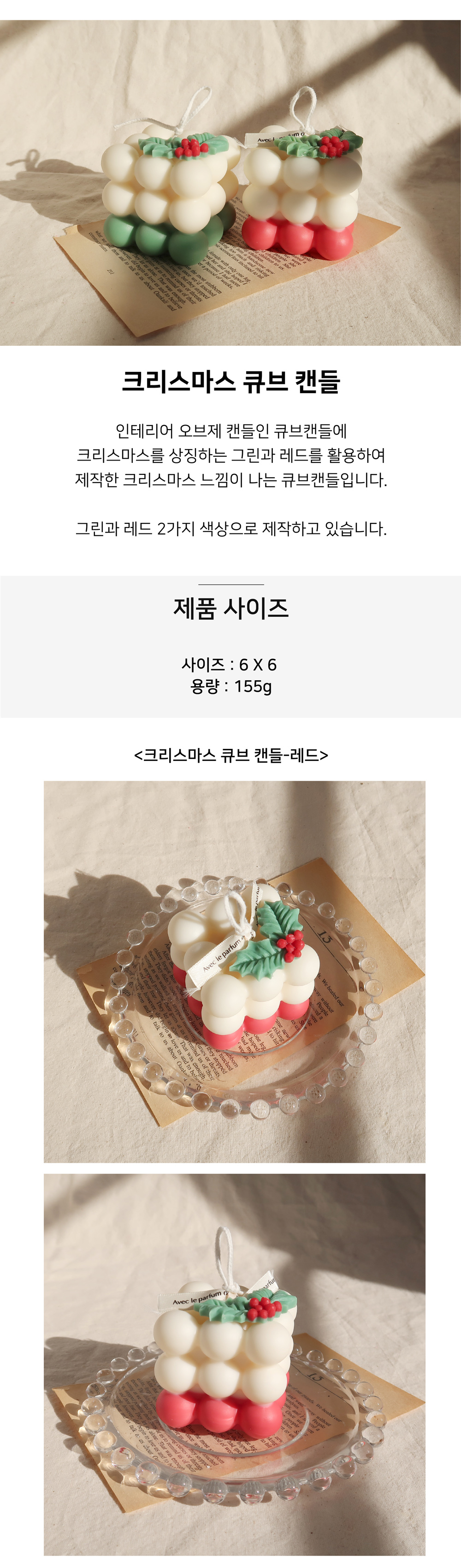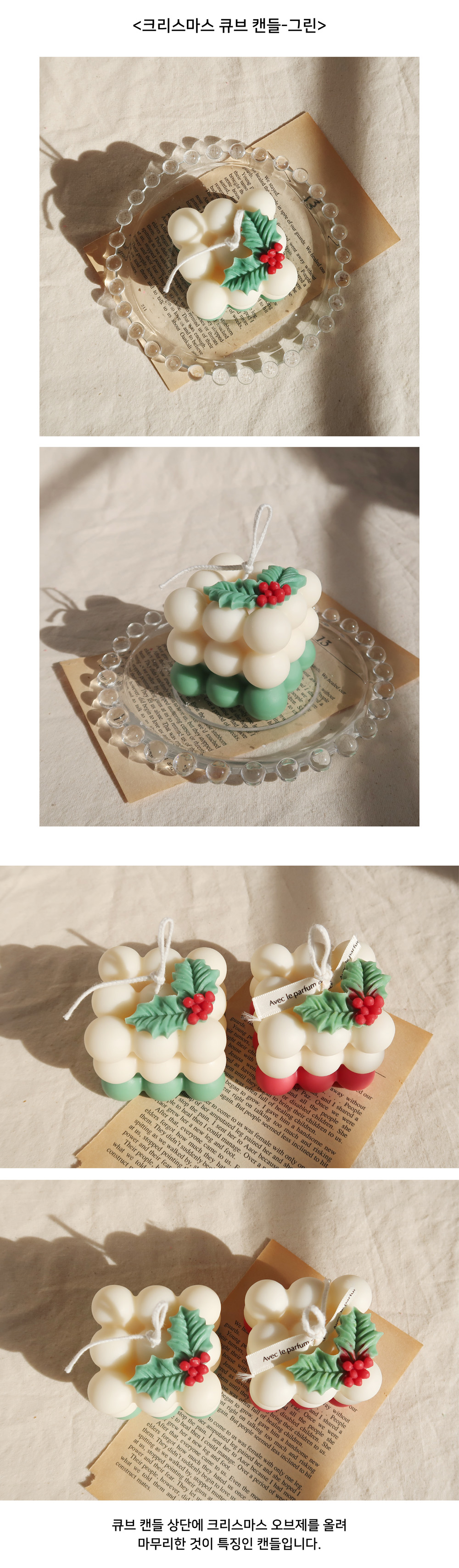 크리스마스 컬러인 그린과 레드로 제작한 큐브캔들.