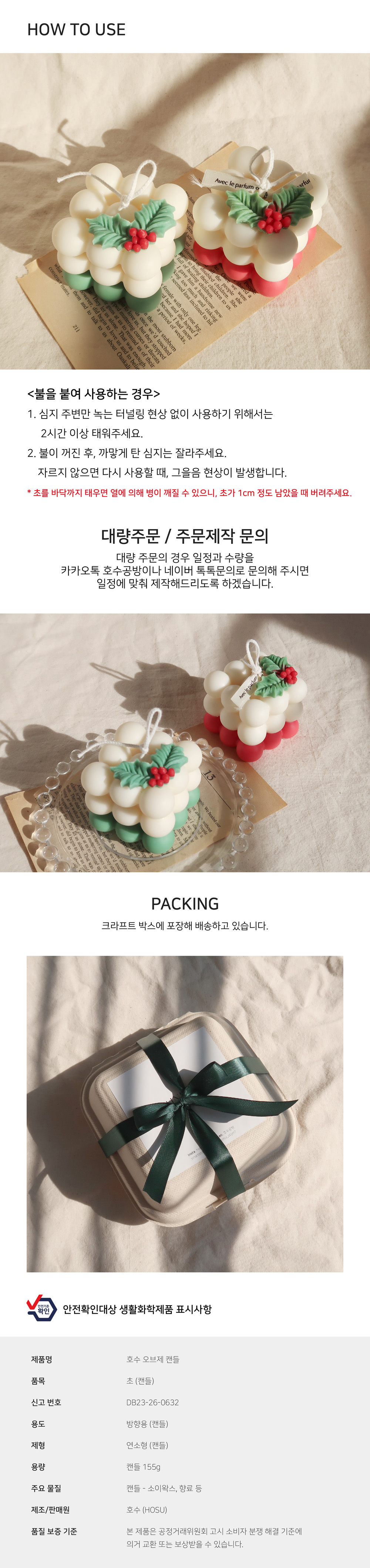 상단에 크리스마스 오브제를 붙여, 크리스마스 분위기가 물씬 나는 캔들이에요.