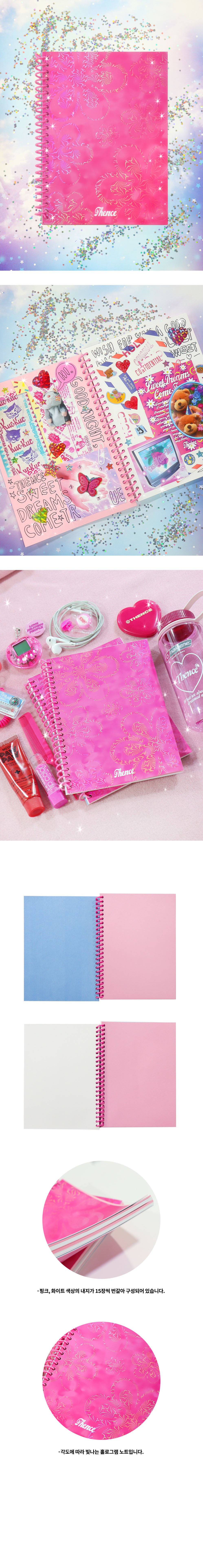| * Size : 15 x 21 (cm) / Material : Plastic, Paper / Color : Pink / Quantity : 1 ea - 핑크 스프링과 홀로그램이 돋보이는 글리터 스프링 노트입니다. 핑크와 화이트 컬러 조화의 내지로 포인트를 주었습니다. 홀로그램은 빛에 따라 꽃무늬가 빛나는 제품입니다. 핑크빛 홀로그램 컬러가 매력적인 아이템으로 필기나 드로잉 용도로 자유롭게 사용하기 좋은 사이즈입니다. - 내지는 핑크, 화이트가 15장씩 번갈아 구성되어있습니다. - 작업 공정상 노트 내지 구김이 있을 수 있습니다. 이는 교환 및 반품 사유가 되지 않으니 신중한 구매 부탁드립니다. |