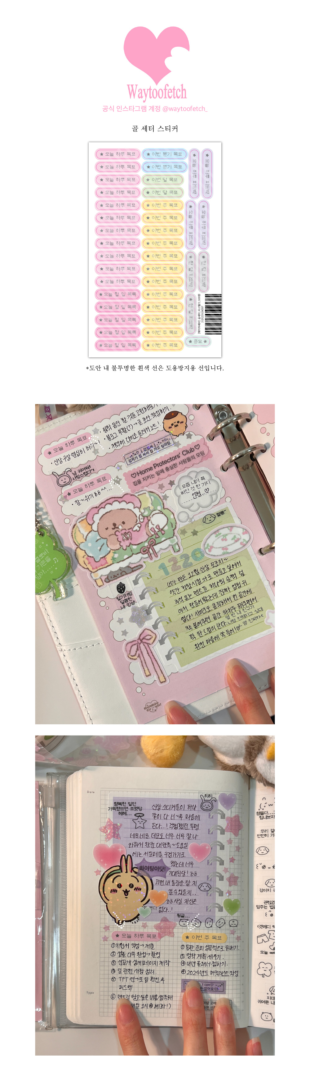 | 2023년을 마무리하고 2024년을 새롭게 준비하면서, 어떻게 하면 조금 더 생산적으로 살 수 있을까!!!!라는 고민을 하던 와중에 나름 저만의 솔루션(?)으로 만들어본 스티카입니다. ? 제가 재수할 때 (레전드 tmi) 존경하던 선생님께서 나의 감정이던 이루고자 하는 목표던, 전부 머릿속으로 생각하지 말고 손으로 적는 걸 습관으로 만드는 게 중요하다고 하셨어요. 그래야 내 머릿속 일들이 시각화되어 우리가 한번 더 직면하고 되새길 수 있으니까요! 사실 이미 플래너 작성하시는 분들이나 다이어리 꾸준히 쓰고 계시는 분들은 이걸 너무 잘하고 계신 거죠!! ♡ ? 암튼 그래서~ 이렇게 우리의 단기적인, 혹은 장기적인 목표를 세우고 스스로에 대해 피드백을 하는 데에 도움이 될 수 있는 가이드라인 같은 스티커가 있으면 좋겠다~라는 생각에 탄생한 게 바로 이 골세터 스티커인데요! 활용도가 정말 좋아요 저도 요즘 매일 쓰는 중이랍니다 ㅎㅎ 한 장으로 대략 1분기 (3개월) 정도 기록할 수 있기 때문에, 우선 3개월 동안 한 장 구매해서 써보시고 본인에게 유용하다 싶으면 추가로 구매하시는 걸 추천드려요 >< |