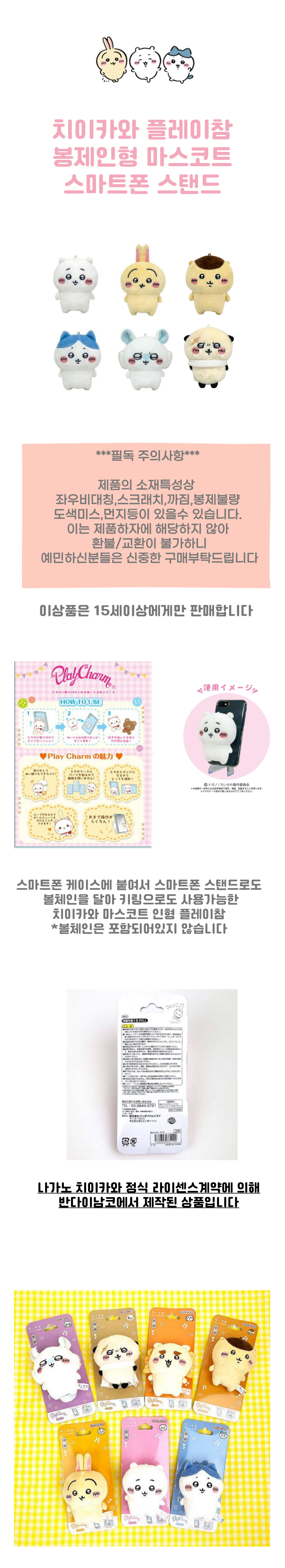 스마트폰 스탠드로도 키링으로도 사용가능한 먼작귀 치이카와들의 모찌모찌한 촉감의 마스코트 인형 플레이참